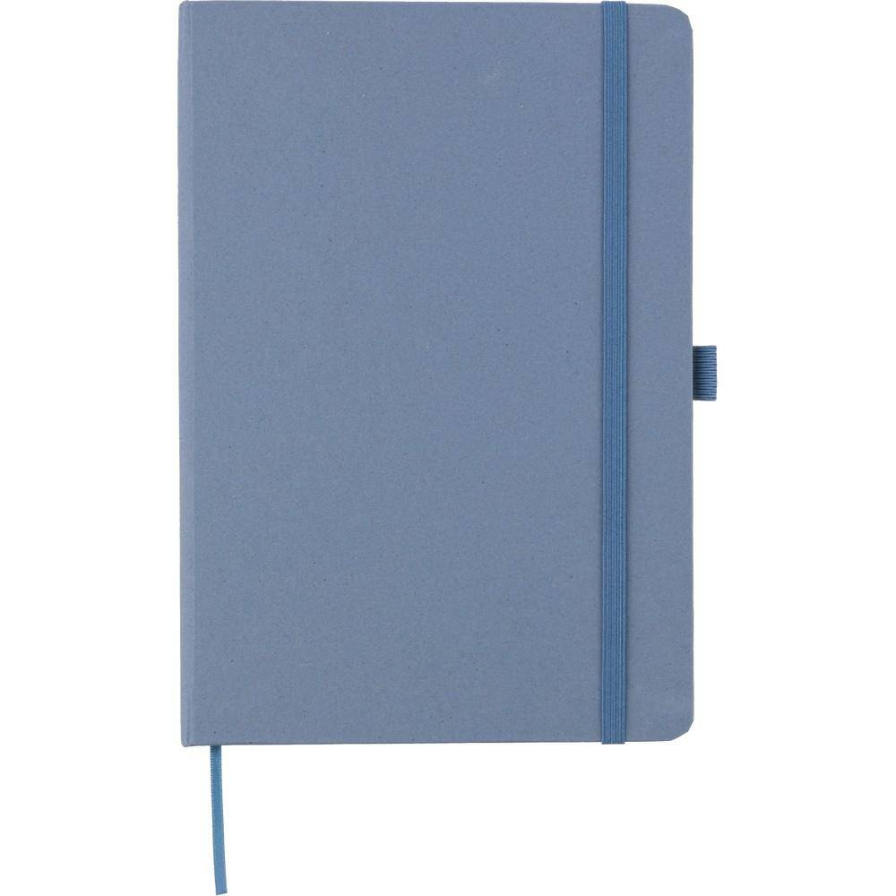Notatnik w formacie ok. A5, posiada 80 stron w linie drukowanych tuszem sojowym, tasiemka zakładkowa umożliwia wygodne zaznaczanie ostatniej strony lub ważniejszych notatek, dodatkowe zamknięcie w postaci dopasowanej kolorystycznie elastycznej opaski, zmieści się do szkolnego plecaka, notatnik posiada papierową okładkę Favini pochodzącą z Włoch, ikona surowca na produkcie, produkt wykonany z kartonu i resztek produkcyjnych (04 - lawenda, 05 - wiśnia, 06 - cytrusy, 18 - migdały, 25- winogrona) oraz papieru 70 g/m²
