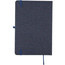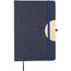Notatnik ok. A5, posiada 80 stron w linie, tasiemka zakładkowa umożliwia wygodne zaznaczanie ostatniej strony lub ważniejszych notatek, dodatkowe zamknięcie w postaci dopasowanej kolorystycznie elastycznej opaski, składana okładka z bambusowym elementem zmienia się w stojak na telefon, zmieści się do szkolnego plecaka, produkt wykonany z RPET