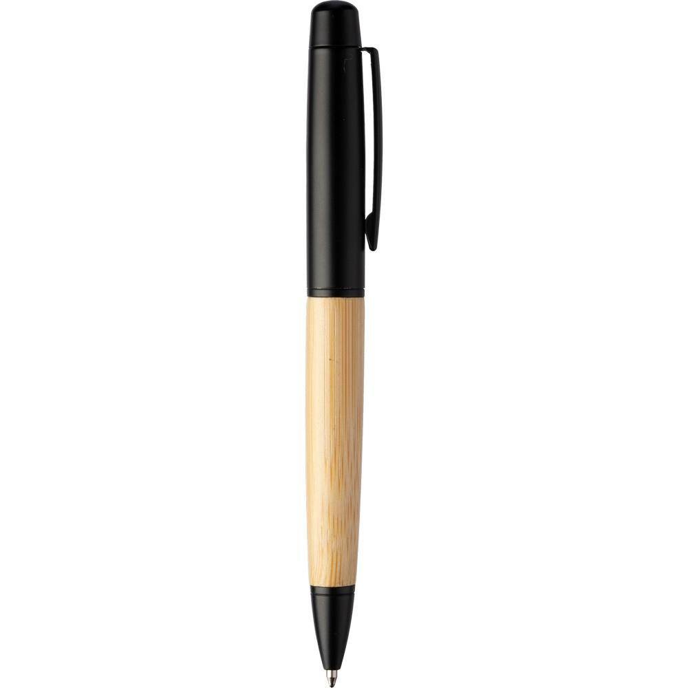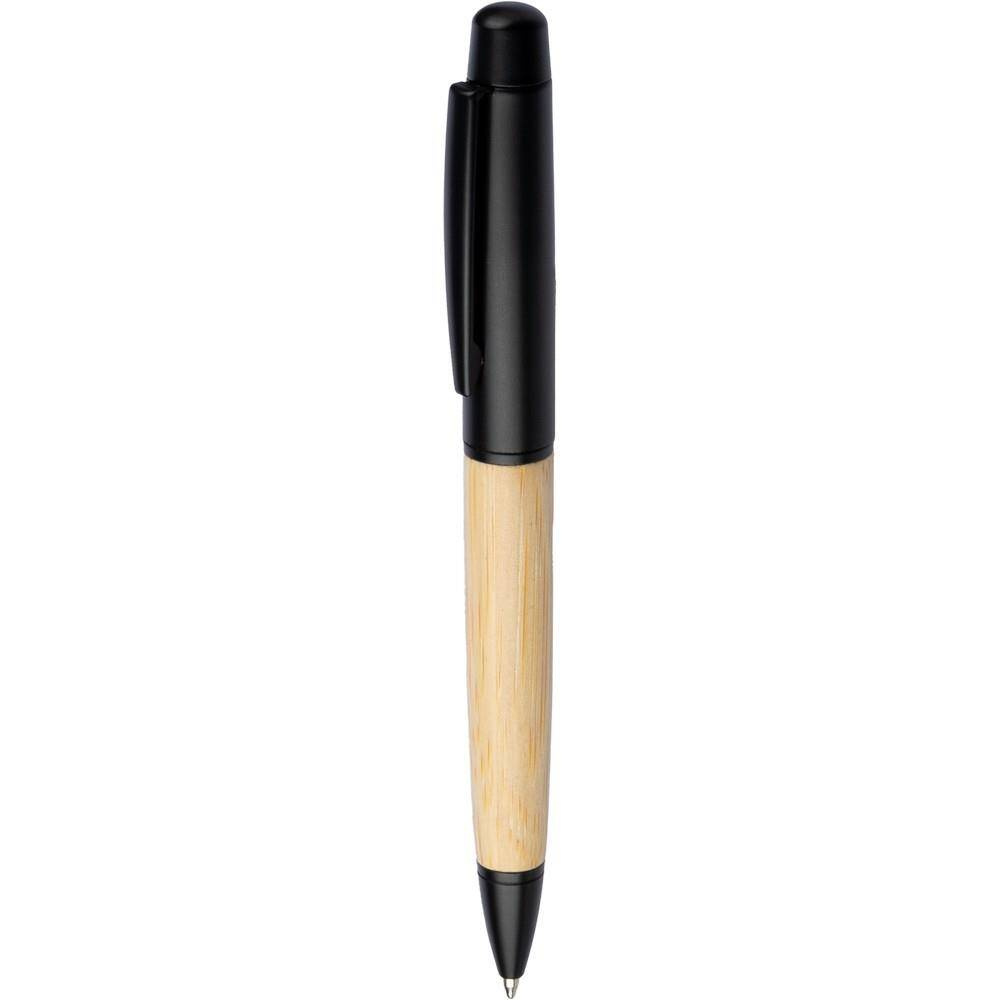 Długopis przekręcany z bambusowym trzonem, posiada niebieski wkład, bambusowa tuba chroniąca przed zniszczeniem w komplecie, produkt wykonany ze stali nierdzewnej