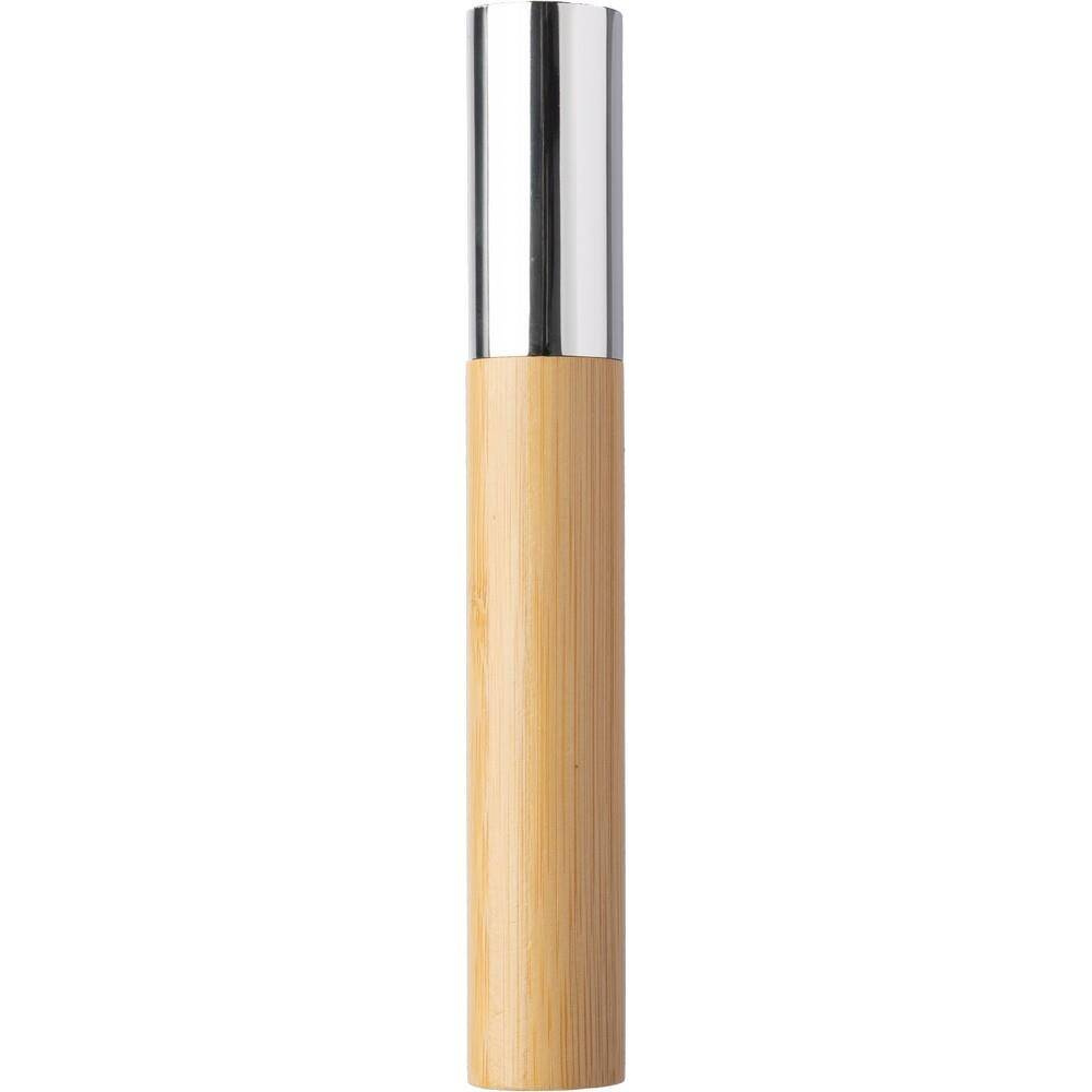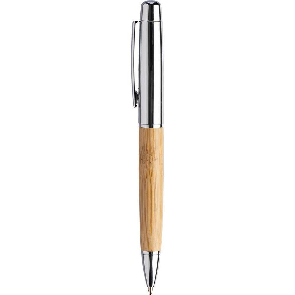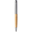 Długopis przekręcany z bambusowym trzonem, posiada niebieski wkład, bambusowa tuba chroniąca przed zniszczeniem w komplecie, produkt wykonany ze stali nierdzewnej