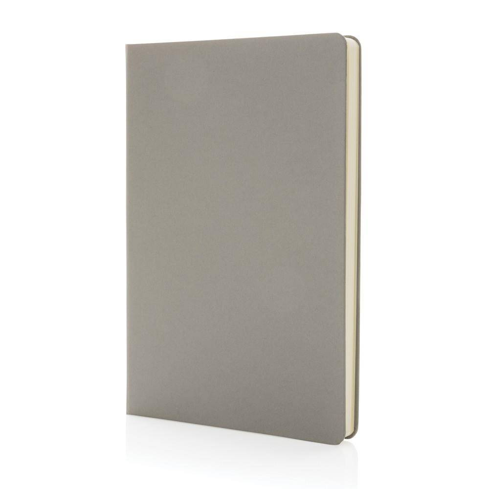 Notatnik A5, (80 kremowych kartek w linie), twarda okładka, okładka oraz strony wewnętrzne posiadają certyfikat FSC® (Forest Stewardship Council), tasiemka