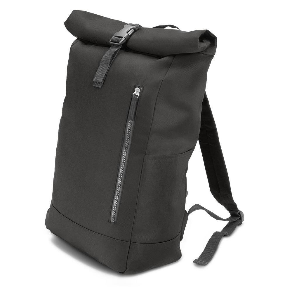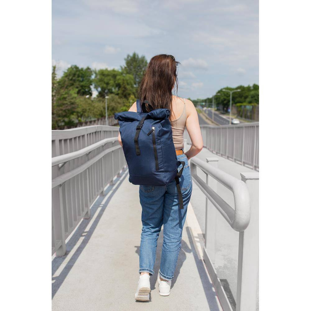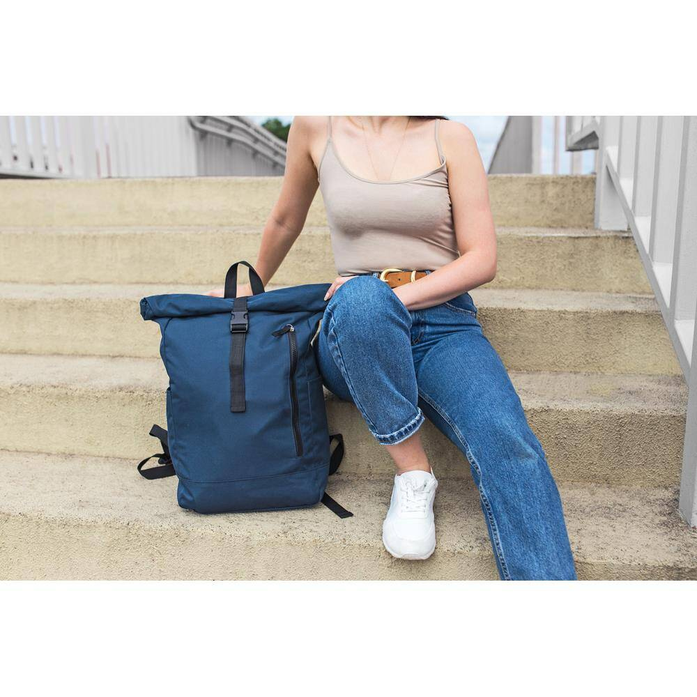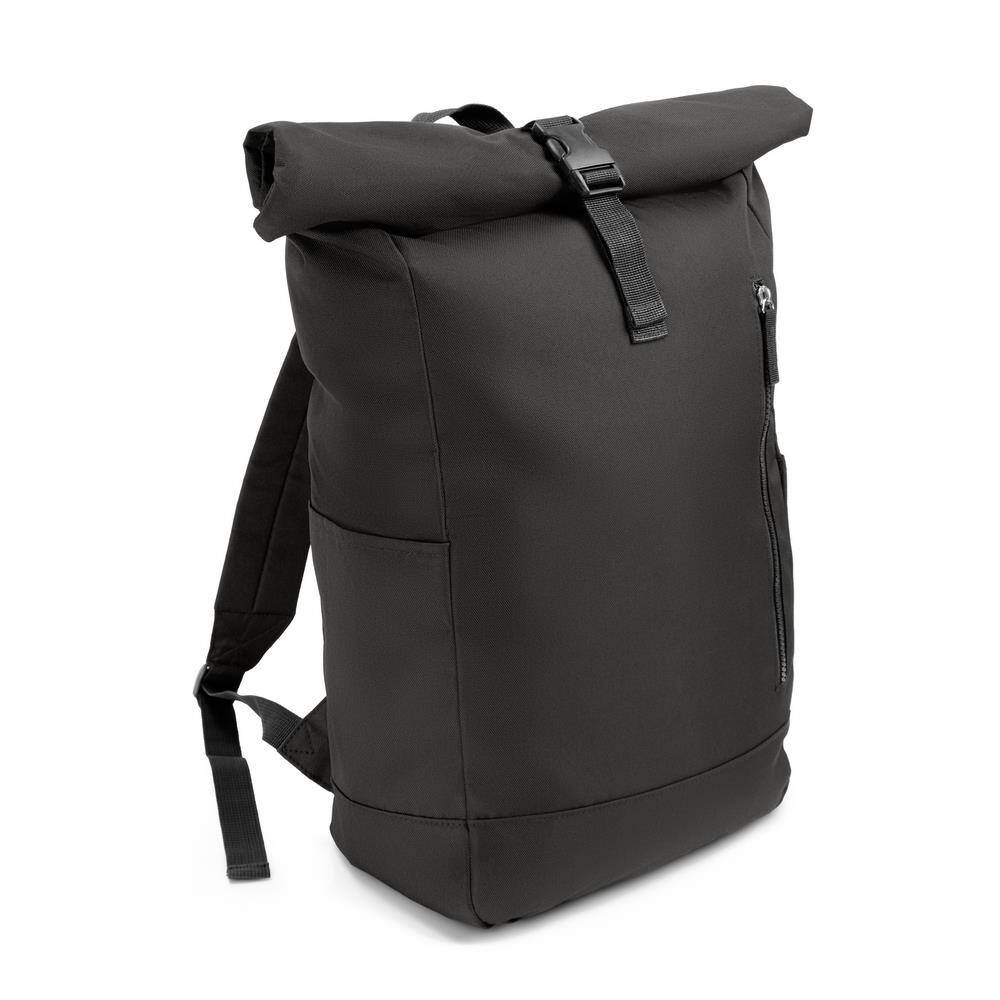 Plecak z przednią kieszenią i główną przegrodą na zamek błyskawiczny, wykonany z RPET, zgodny z certyfikatem GRS (Global RecycIed Standard), 2 kieszenie boczne, zwijana