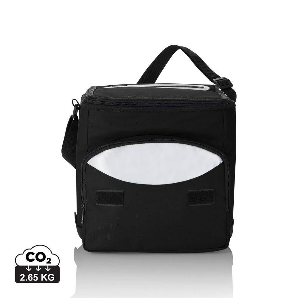 Torba termoizolacyjna, składana, wykonana z poliestru 600D, dodatkowa kieszonka z przodu na zamek błyskawiczny, pomieści do 12 puszek 0,33 l, ślad węglowy produktu: 2,65 kg CO2