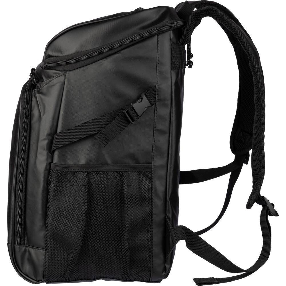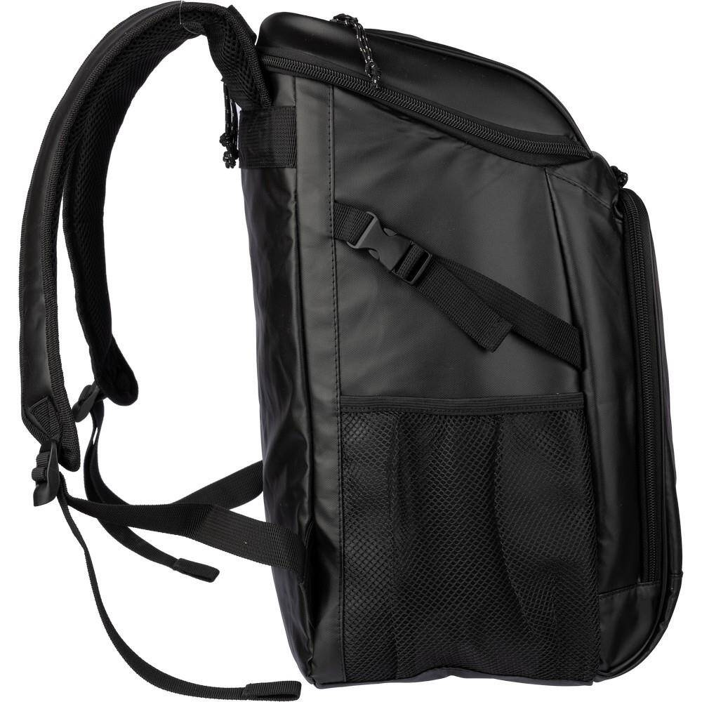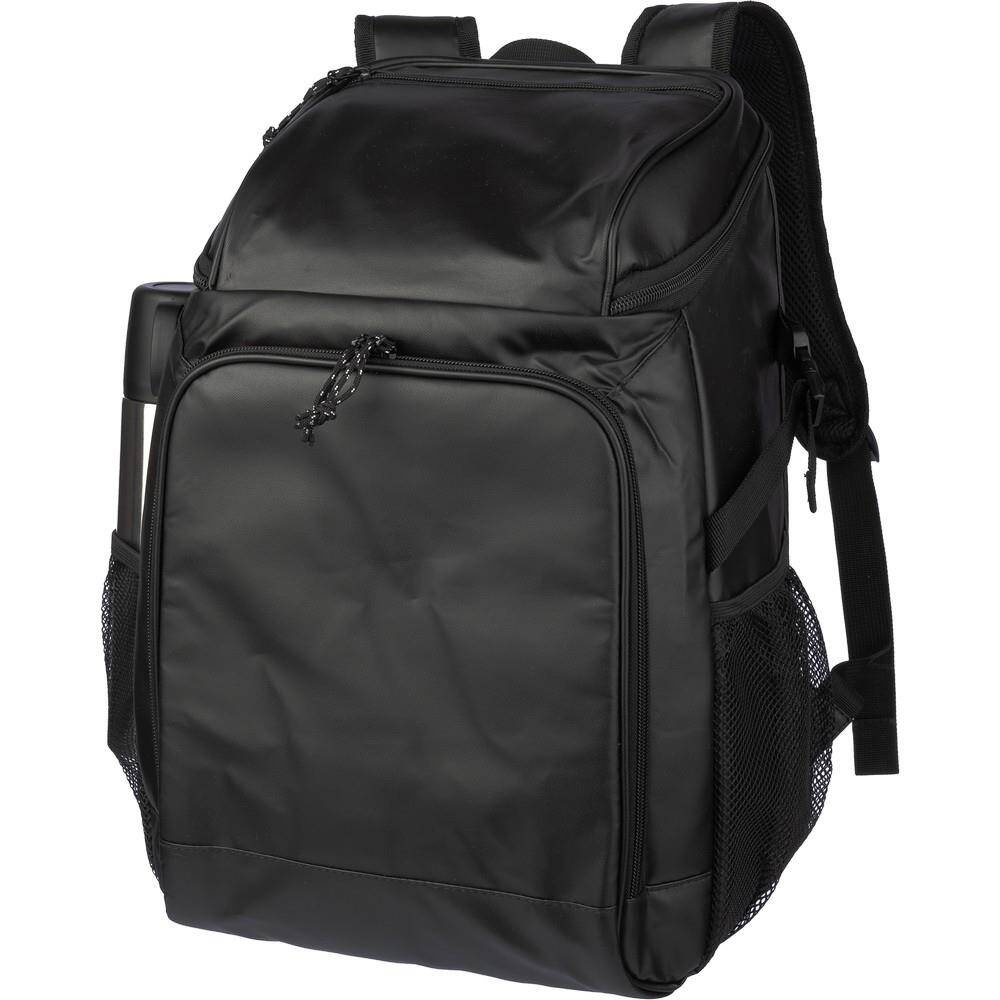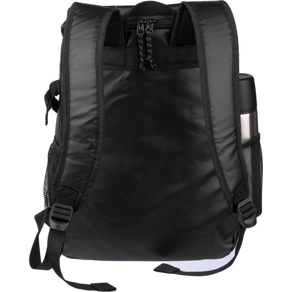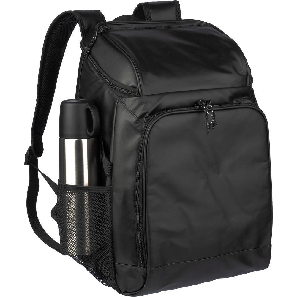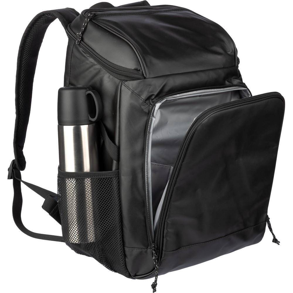 Plecak termoizolacyjny, przegroda główna oraz przednia kieszeń na zamek błyskawiczny, posiada boczną kieszeń siateczkową z elastyczną taśmą zamykającą,