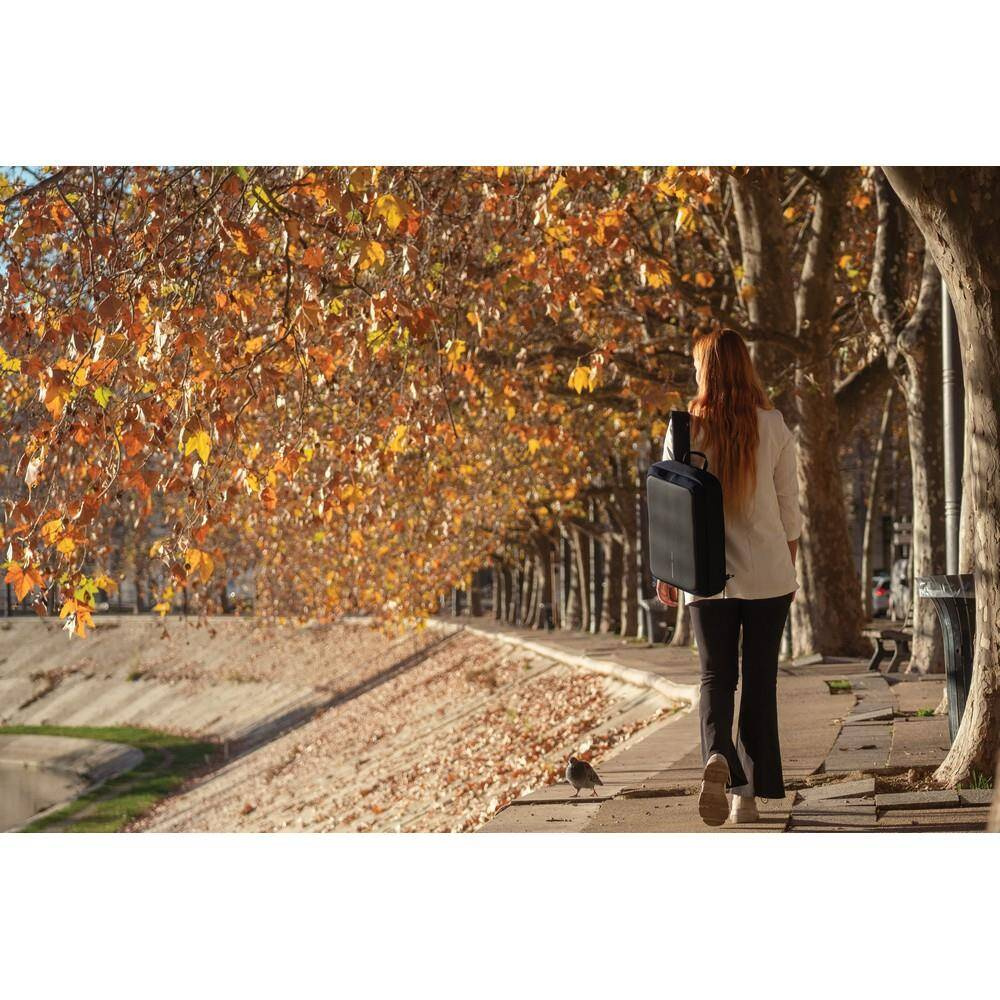 Plecak na laptopa 16”, torba, ukryte kieszenie wewnątrz, przegroda na tablet do 12,9”, wykonany z materiału odpornego na przecięcie, metalowa rama wewnątrz, kieszeń z ochroną RFID, przestronna przegroda główna, zintegrowana kłódka, posiada znacznik AWARE™, który gwarantuje, że wykorzystane materiały pochodzą z recyklingu