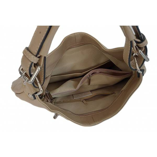 Wnętrze z materiału posiada kieszonkę na zamek i przegródkę na telefon.