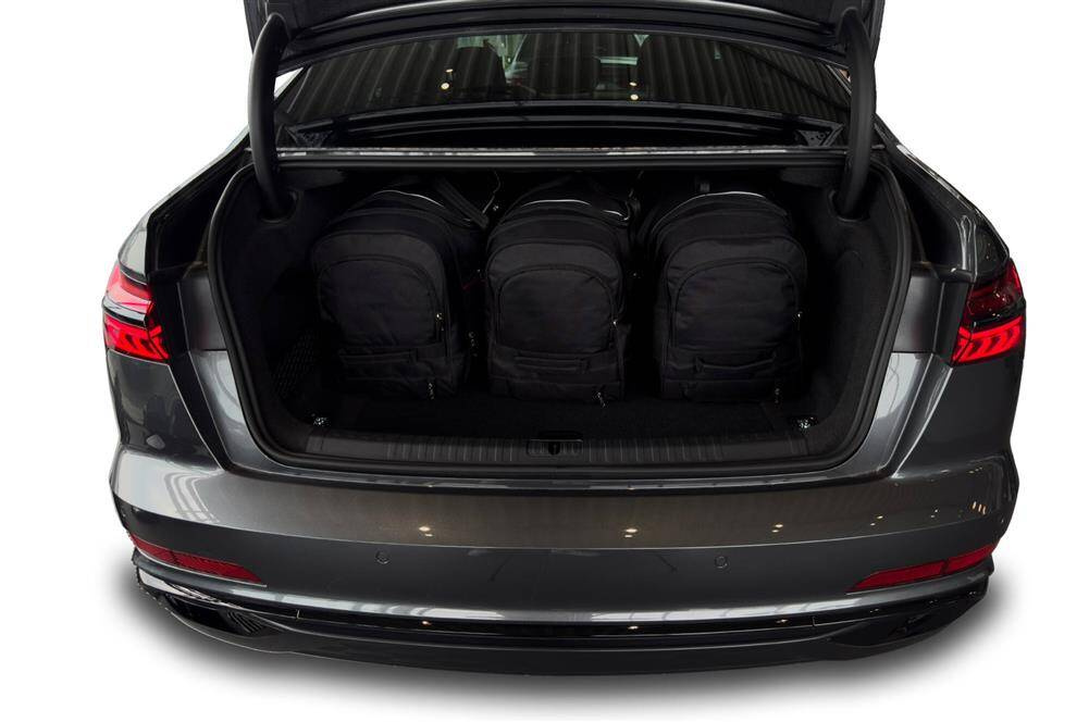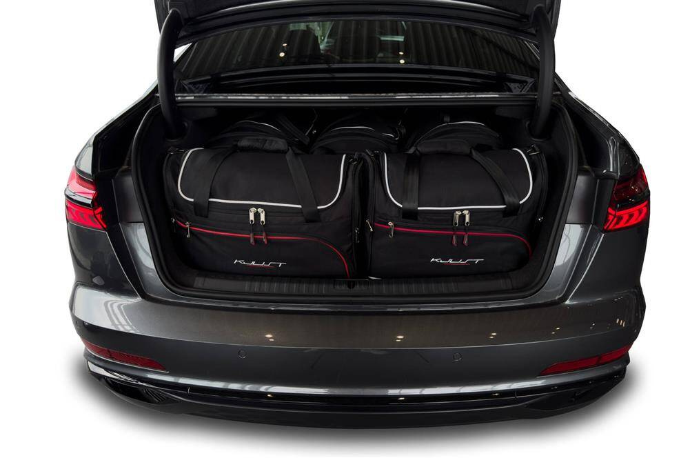 Asymetrycznie ścięty bok toreb podróżnych KJUST sprawia, że torba dokładnie przylega do tylnej kanapy samochodu i pozwala wykorzystać przestrzeń bagażową w pełni.