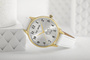 Złota koperta harmonijnie współgra ze srebrną tarczą, na której widnieje uroczy wizerunek pieska, dodając zegarkowi radosnego charakteru. Ta subtelna grafika sprawia, że zegarek staje się wyjątkowym, osobistym akcesorium, które maluch będzie nosił z dumą. Złote wskazówki i indeksy dodają elegancji, a sprytnie zaprojektowany sekundnik, poruszający się z gracją, uczyni naukę odczytywania czasu przyjemnością i ekscytującą przygodą.