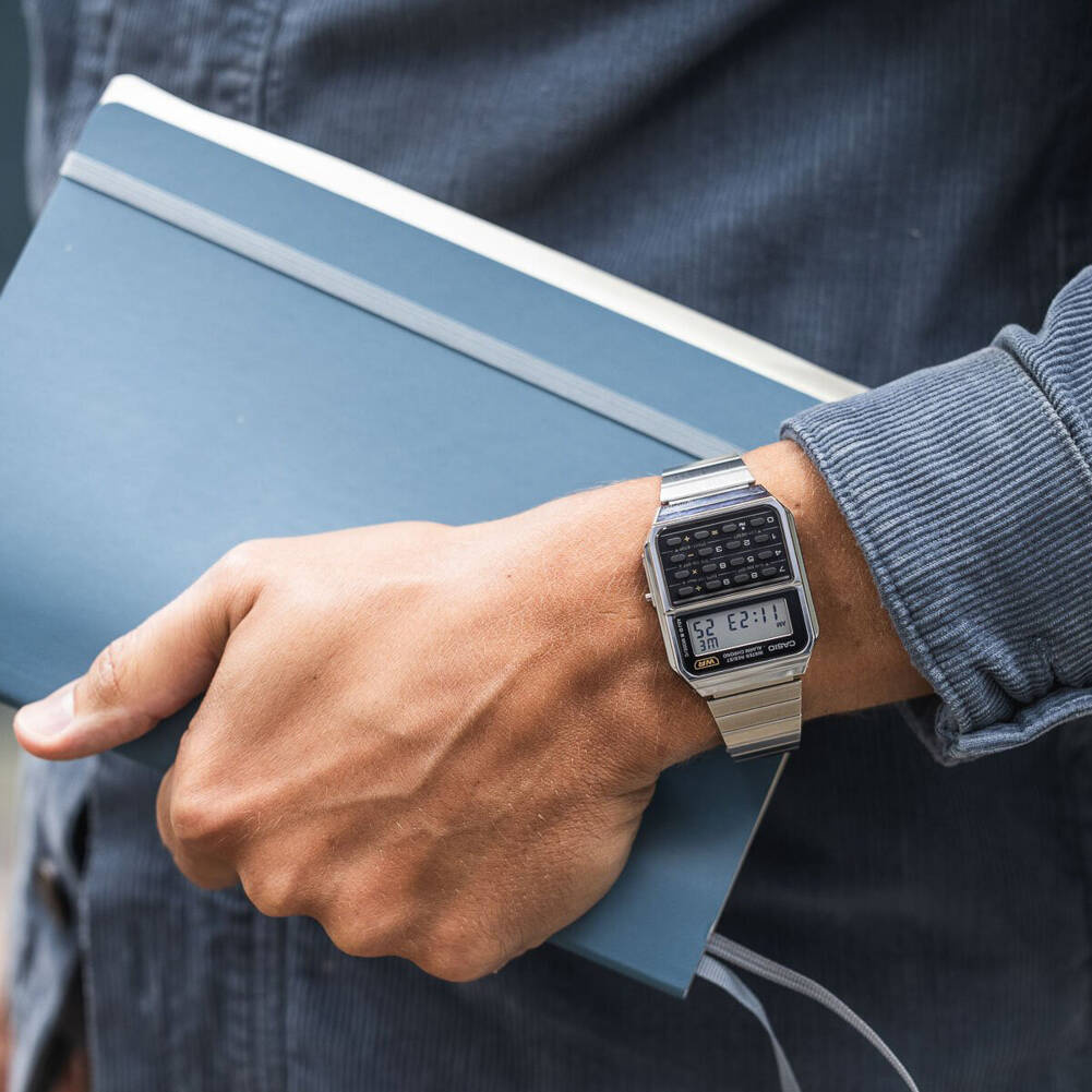 - Kultowy design w stylu vintage - stylizowany na klasyczne zegarki i kalkulatory z lat 80. Casio