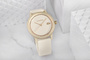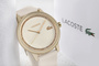 Złocona tarcza, lśniąca niczym ciepłe promienie zachodzącego słońca, dodaje zegarkowi blasku, który nie jest nachalny, ale doskonale wyważony – tak jak perfumy, które zostawiają za sobą delikatną woń luksusu. Cyrkonie, które otaczają tarczę, przypominają rozgwieżdżone niebo – ich subtelne migotanie sprawia, że każda sekunda jest pełna blasku, ale nigdy przesadnego. To wyrafinowany dodatek, który podkreśla klasę bez zbędnego przepychu. Pasek w ciepłym odcieniu kości słoniowej, wykonany z gładkiego, matowego materiału, jest jak delikatny aksamit na skórze – komfortowy, a jednocześnie pełen klasy. Idealnie balansuje pomiędzy klasycznym urokiem a nowoczesnym designem, dodając całości miękkości i subtelności, która kontrastuje z wyrazistą, złotą tarczą. Każdy szczegół, od subtelnie połyskującego napisu LACOSTE po złotego krokodyla na godzinie trzeciej, to niczym biżuteria dodana do codziennej stylizacji, która nie tylko zdobi, ale staje się integralną częścią osobistego stylu.