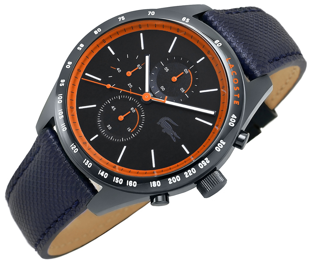 Chronografy w tym modelu zegarka Lacoste to nie tylko ozdoba, ale prawdziwe narzędzie precyzji i kontroli nad czasem. Trzy precyzyjnie rozmieszczone sub-tarcze pełnią funkcje stoperów, pozwalając na dokładne mierzenie sekund, minut i godzin, co daje możliwość śledzenia czasu z wyjątkową precyzją, niezależnie od sytuacji. Pomarańczowe akcenty na wskazówkach sub-tarcz nie tylko dodają wizualnej dynamiki, ale również ułatwiają szybkie odczytanie wyników. Idealne rozwiązanie dla aktywnego mężczyzny, który chce mieć pełną kontrolę nad upływem czasu, czy to podczas treningu, zawodów, czy codziennych wyzwań.