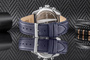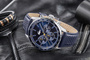 Wykonany jest z wysokiej jakości, naturalnej skóry, która łączy elegancję z trwałością. Skórzany pasek doskonale układa się na nadgarstku, zapewniając wygodę noszenia przez cały dzień. Jego granatowy kolor, z perforowanym designem podkreśla elegancki charakter zegarka, dodając mu wyrafinowanego stylu. Naturalna skóra gwarantuje nie tylko długą żywotność paska, ale również piękne starzenie się materiału, co z czasem nadaje mu indywidualnego, luksusowego wyglądu. To doskonały wybór dla mężczyzn ceniących klasykę i wysoką jakość wykonania.