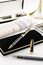 - Komplet piśmienniczy ARIZONA ze złotymi wykończeniami pakowany w etui wykonane z eleganckiego czarnego weluru.