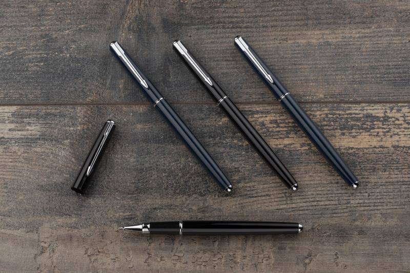 - Pióro kulkowe wykonane z metalu ze srebrnymi wykończeniami.