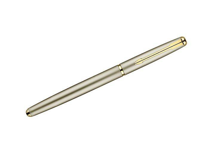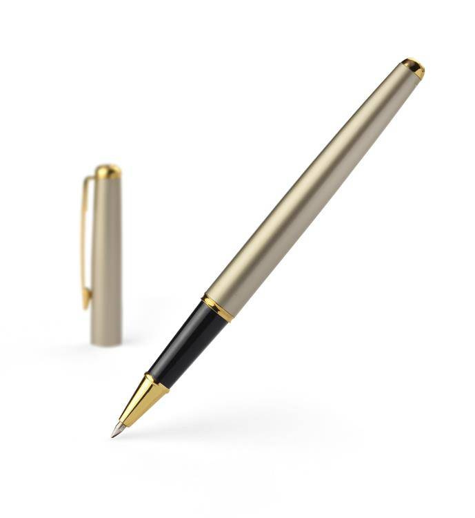 - Pióro kulkowe wykonane z metalu ze złotymi wykończeniami.