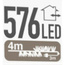 Ten łańcuch świelny ma aż 576 gęsto ułożnych bo, co 5,5 mm diod LED, dzięki temu gwarantuje wspaniały efekt świetlny, który na pewno przyciągnie wzrok i sprawi, że wokół zapanuje wspaniały, świąteczny klimat.
