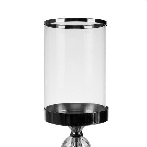 - SPECYFIKACJA - kolor: srebrny / przeźroczysty; materiał: szkło, pozostałe: żelazo + EVA średnica podstawy: 12 cm; średnica kielicha: 10 cm; wysokość świeczników: 28, 34,3, 40,9 cm; waga: 2,195 kg; waga w opakowaniu: 2,880 kg.