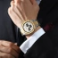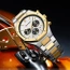 Zegarek męski CURREN 8440 to elegancki męski zegarek idealny zarówno do eleganckiego ubioru, jak i do noszenia na co dzień. Na białej tarczy ze złotym wykończeniem, znajdziemy datownik dnia miesiąca oraz subtarcze będące wskazaniami chronografu i czasu dobowego.