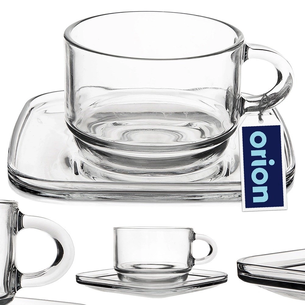 - Zestaw 6 filiżanek ze spodkiem do kawy i herbaty - Zestaw sześciu filiżanek do serwowania kawy, herbaty lub innych napojów. Pojemność maksymalna każdej filiżanki wynosi 250 ml, a ich wymiary to 11,5 x 9 x 6,5 cm, spodek ma kwadratowy kształt i wymiary 14 x 14 x 2 cm.