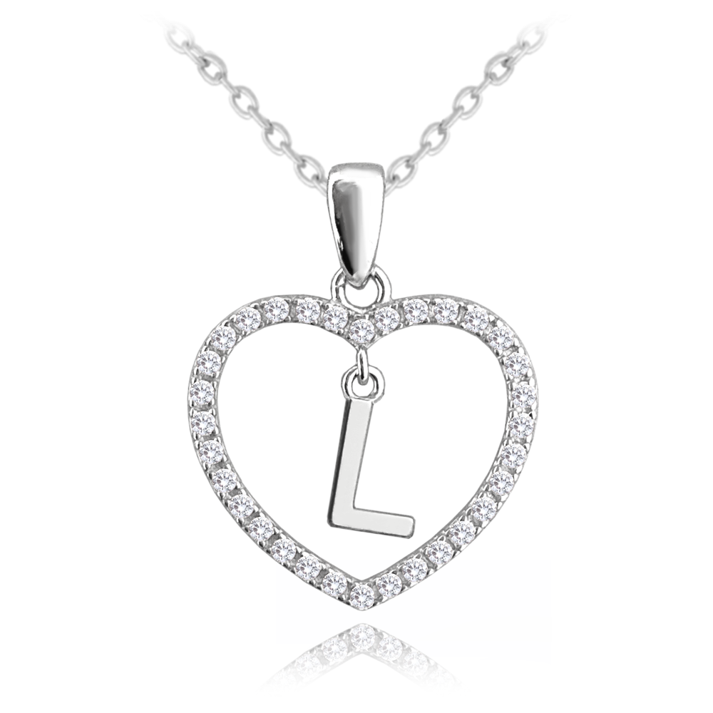 MINET Srebrny naszyjnik litera w sercu „L” z cyrkoniami