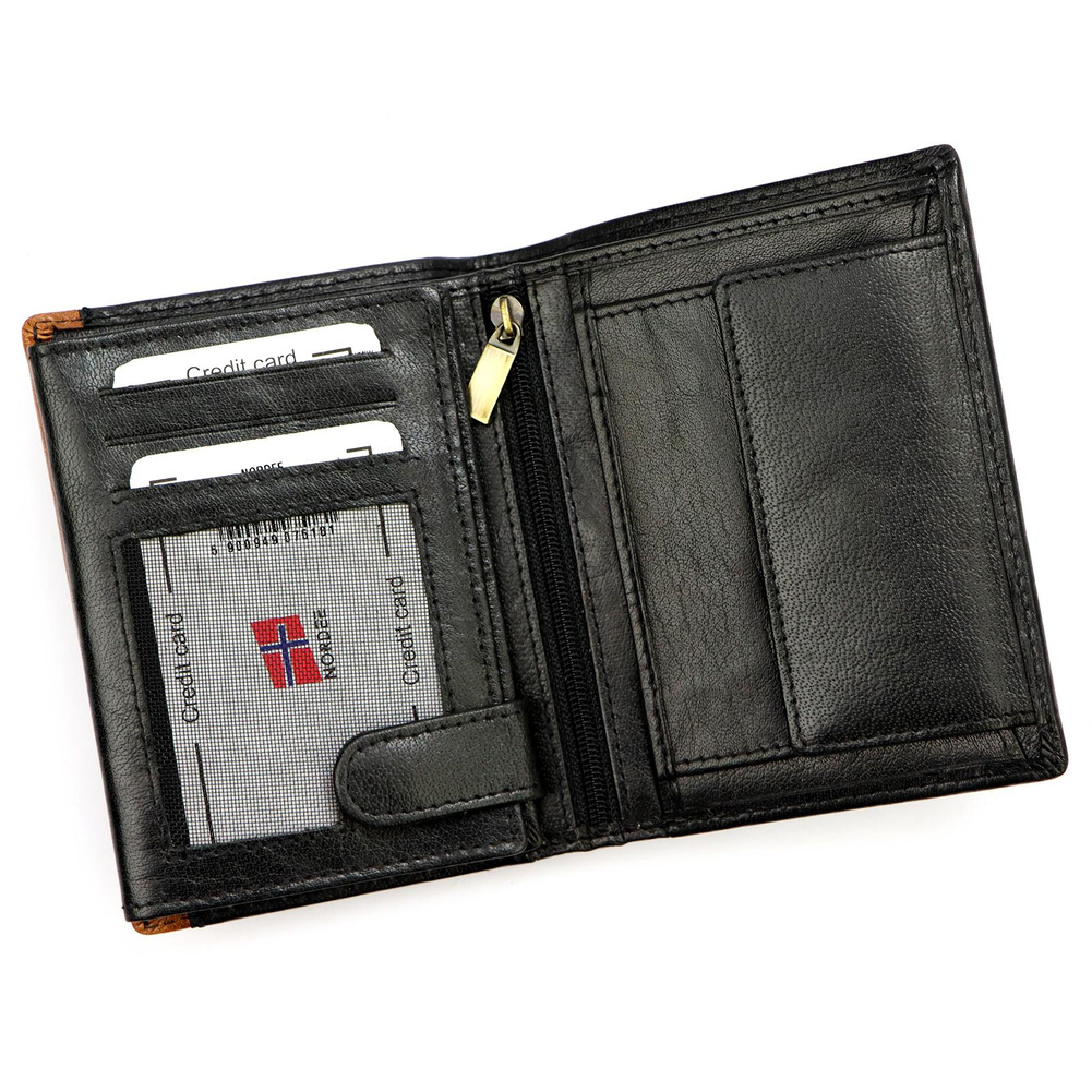 Portfel wyposażony jest w aż 11 przegródek na karty, co pozwala na wygodne uporządkowanie kart płatniczych, wizytówek czy dokumentów. Wewnętrzna przezroczysta przegroda umożliwia szybki dostęp do najważniejszych dokumentów, takich jak dowód tożsamości czy prawo jazdy.