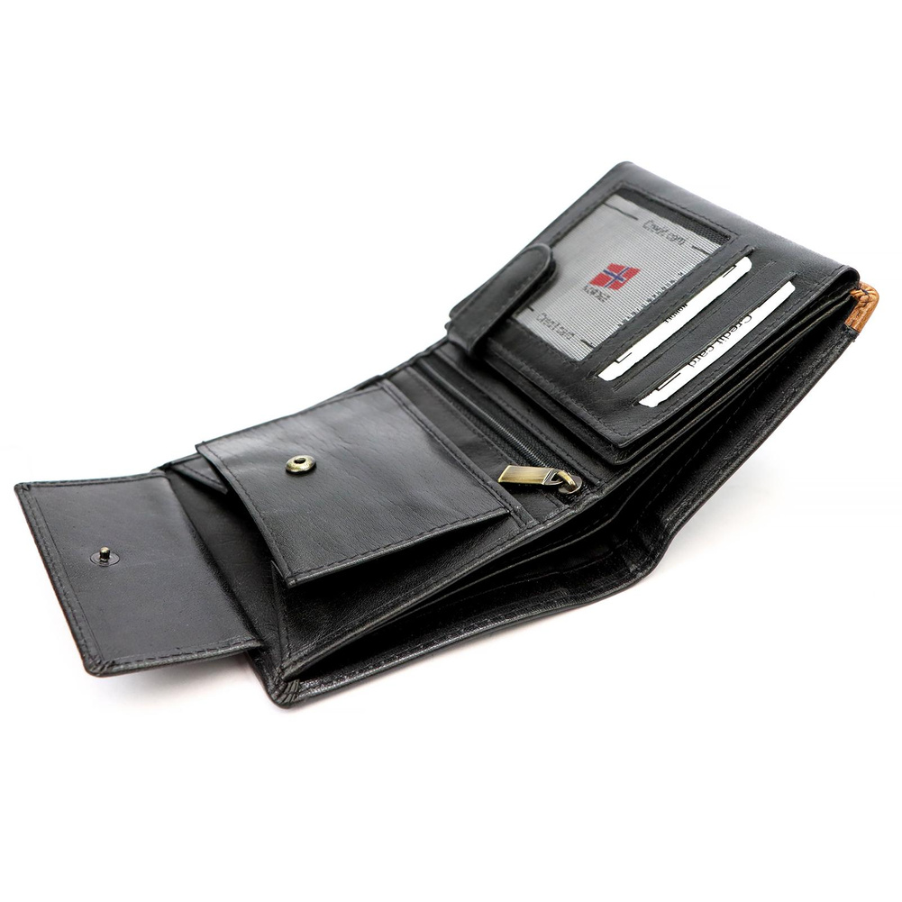 Wnętrze portfela zaprojektowano z myślą o maksymalnej funkcjonalności. Dwie przestronne komory pomieszczą banknoty, a dwie kieszenie oferują dodatkowe miejsce na przechowywanie drobiazgów. Jedna z kieszeni na monety zamykana jest na suwak, a druga na zatrzask, co zapewnia wygodę i bezpieczeństwo użytkowania.