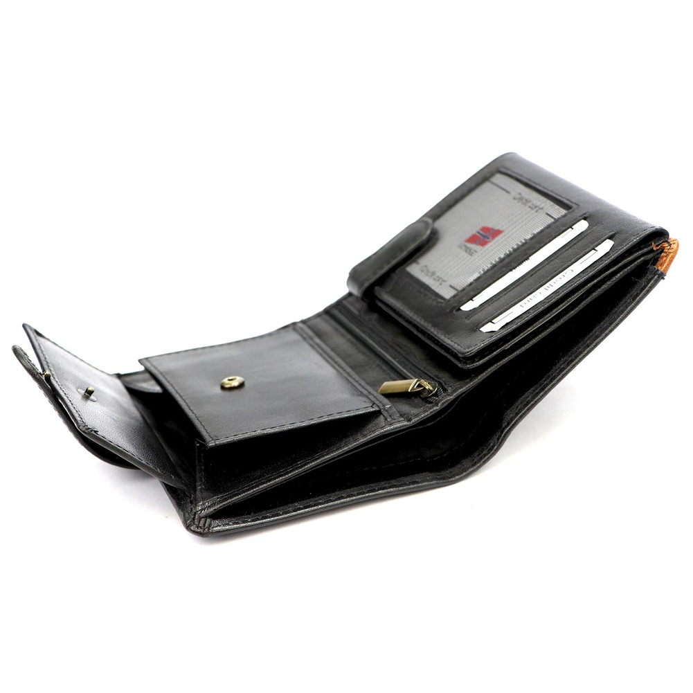 Wnętrze portfela zaprojektowano z myślą o maksymalnej funkcjonalności. Dwie przestronne komory pomieszczą banknoty, a dwie kieszenie oferują dodatkowe miejsce na przechowywanie drobiazgów. Jedna z kieszeni na monety zamykana jest na suwak, a druga na zatrzask, co zapewnia wygodę i bezpieczeństwo użytkowania.