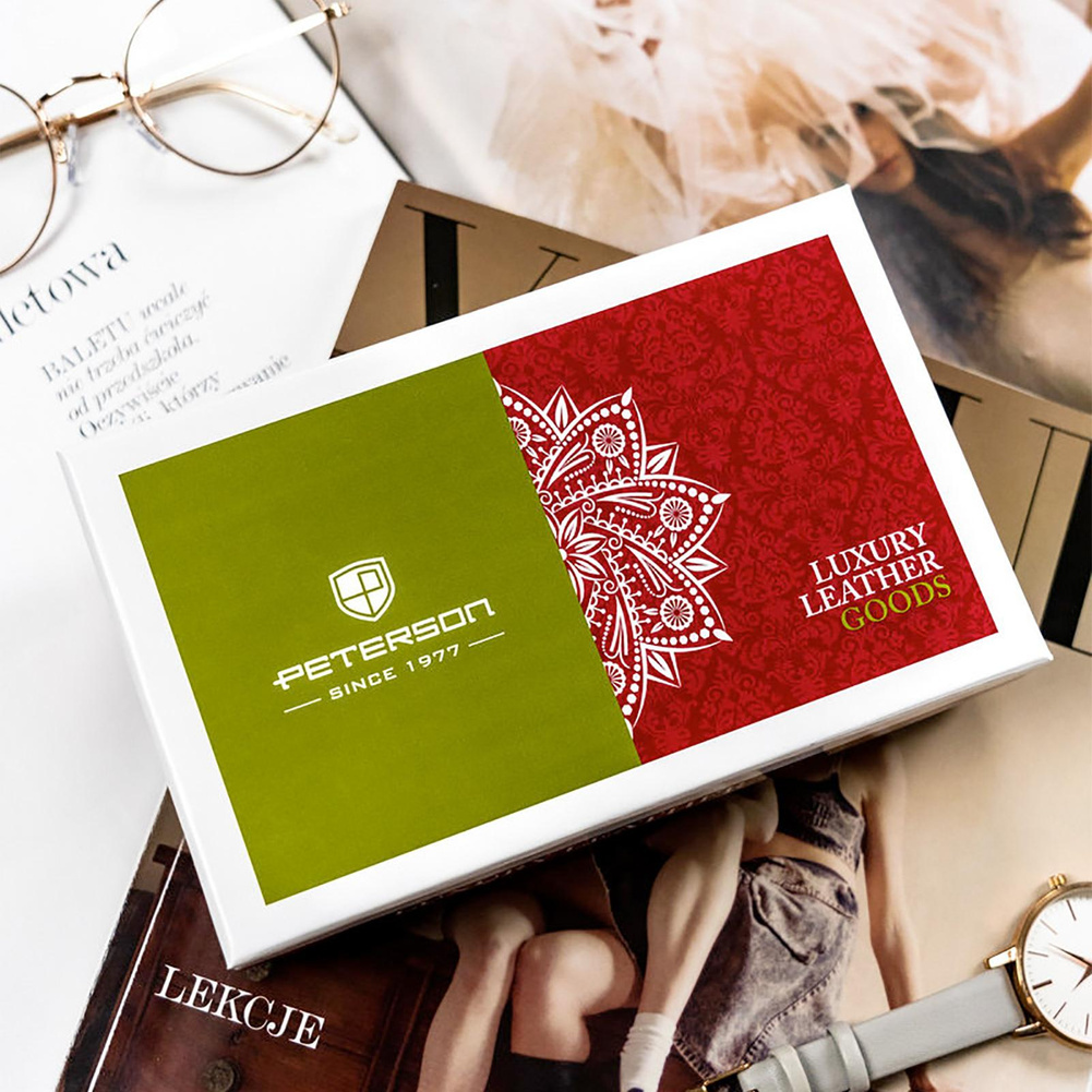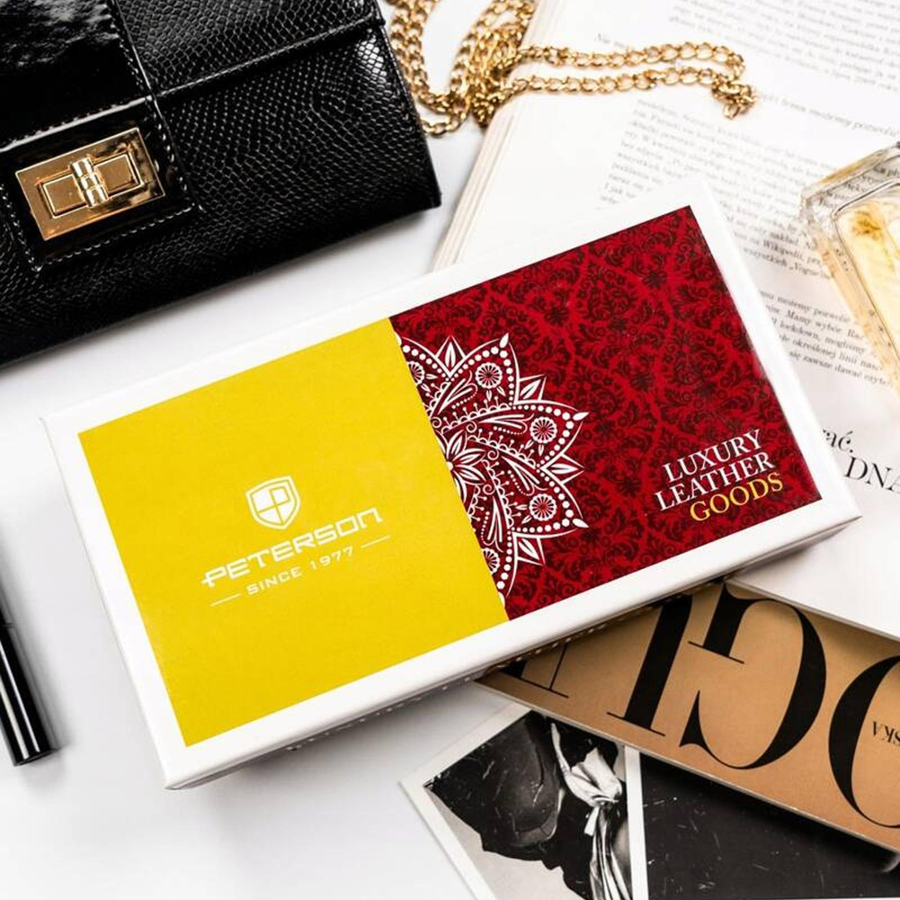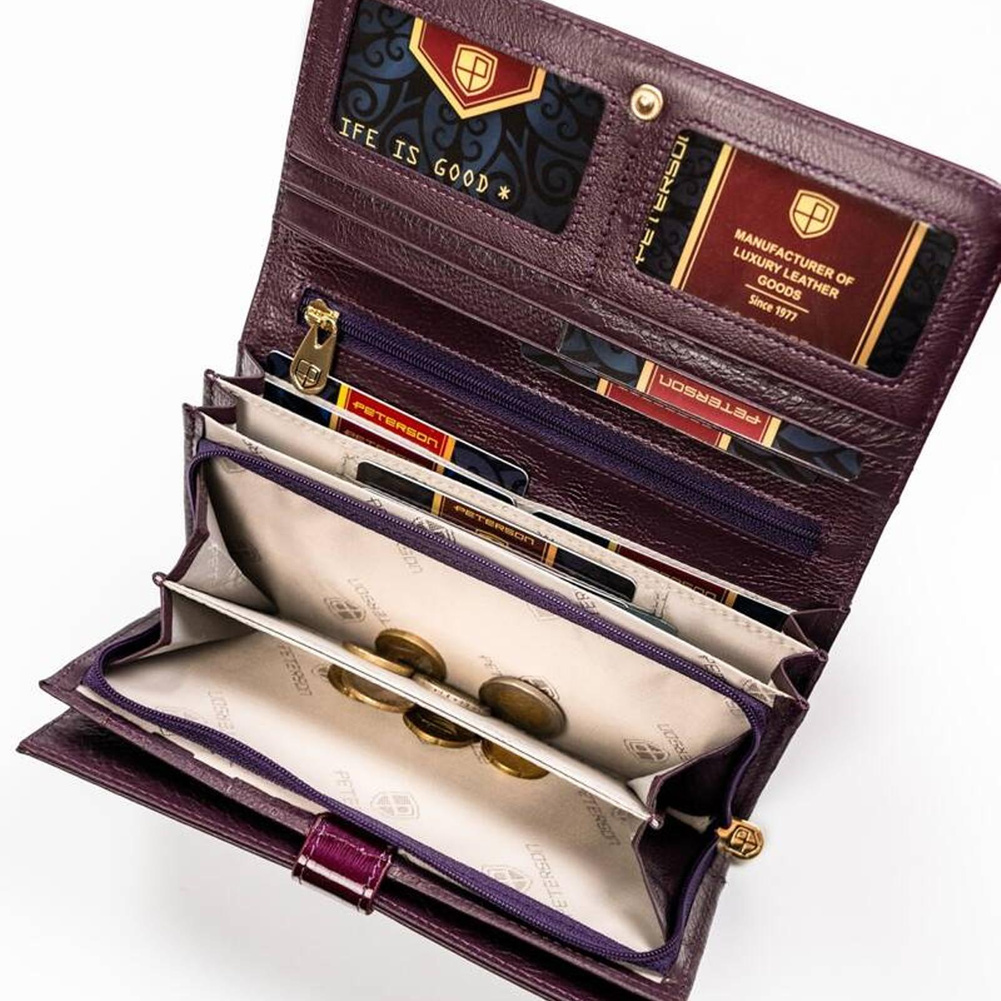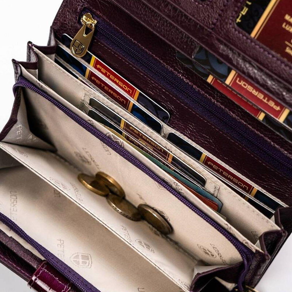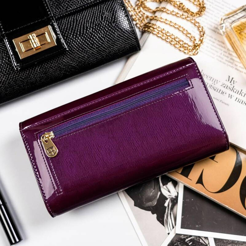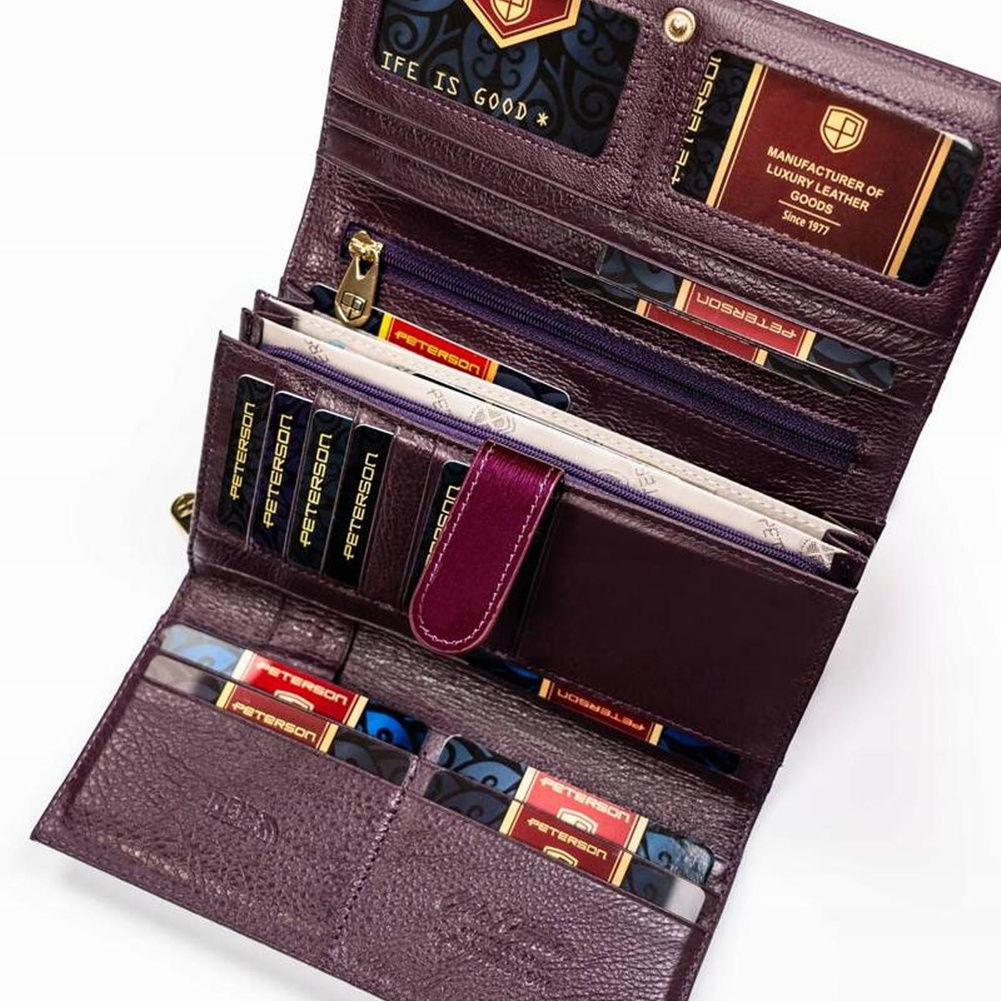 - 1 kieszonkę w centralnej części portfela, zapinaną na suwak;