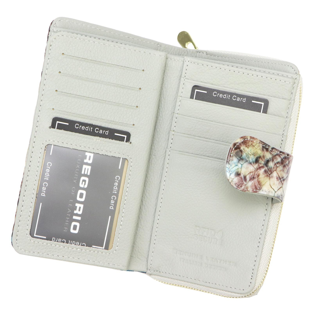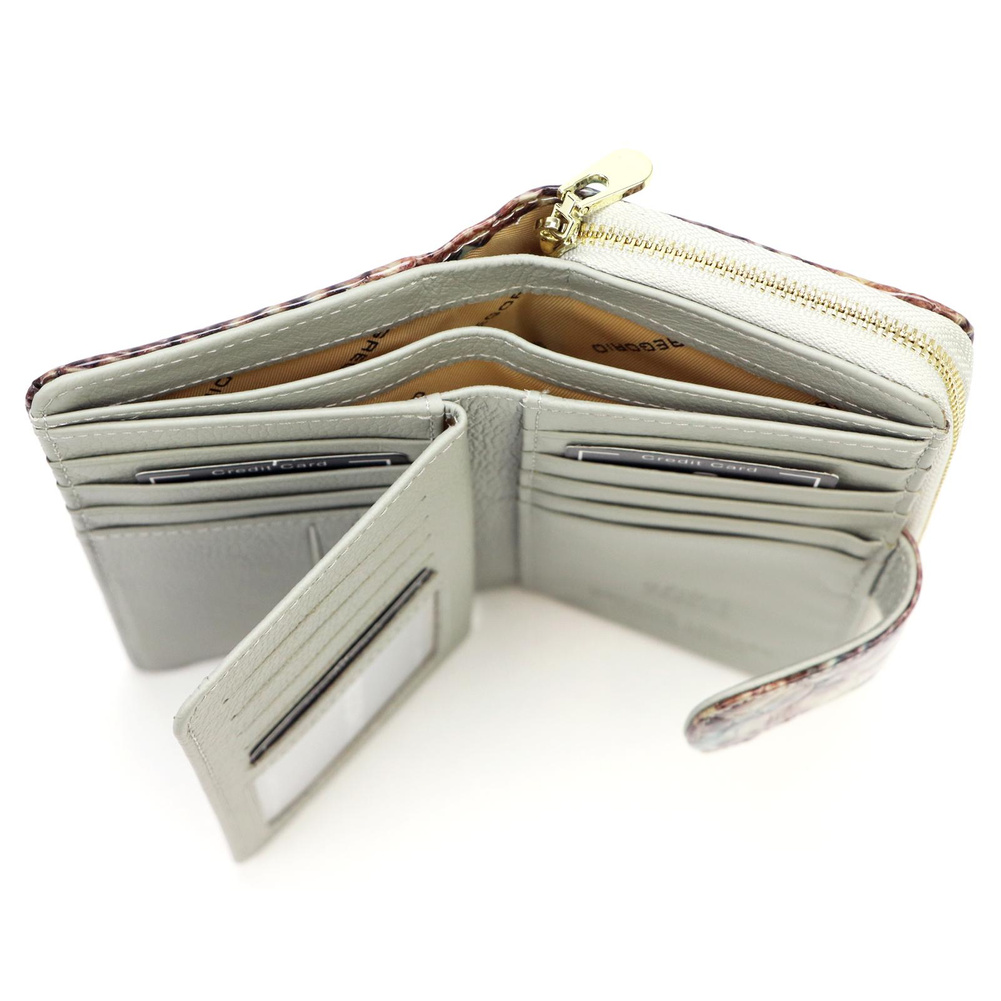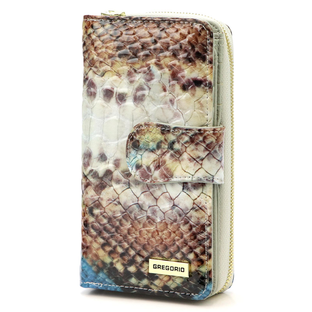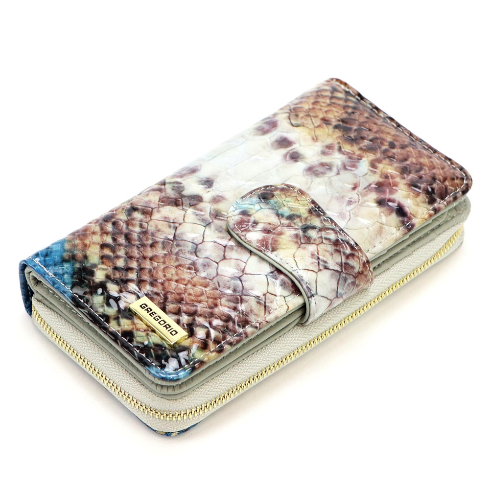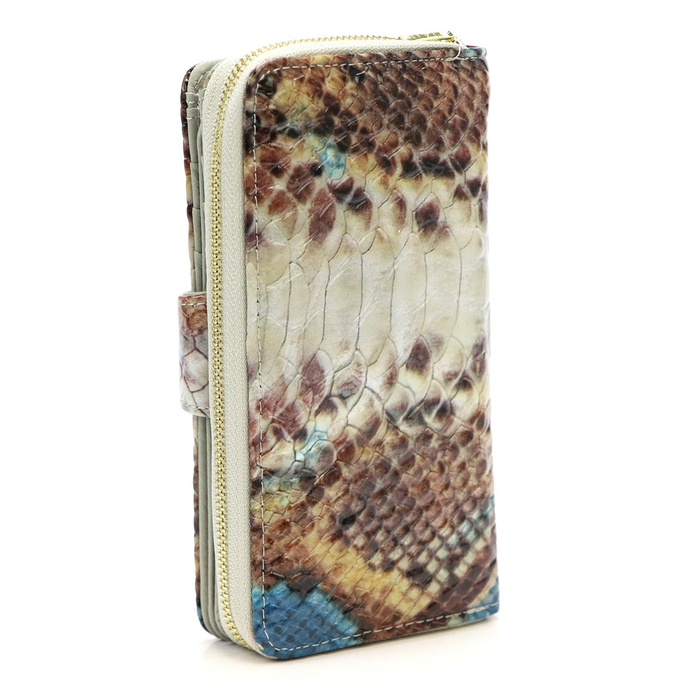Portfel wykonany jest z wysokiej jakości skóry naturalnej, która gwarantuje trwałość oraz wyjątkowy wygląd. Faktura imitująca skórę węża nadaje mu oryginalnego charakteru, a złote elementy wykończeniowe podkreślają jego luksusowy styl.
