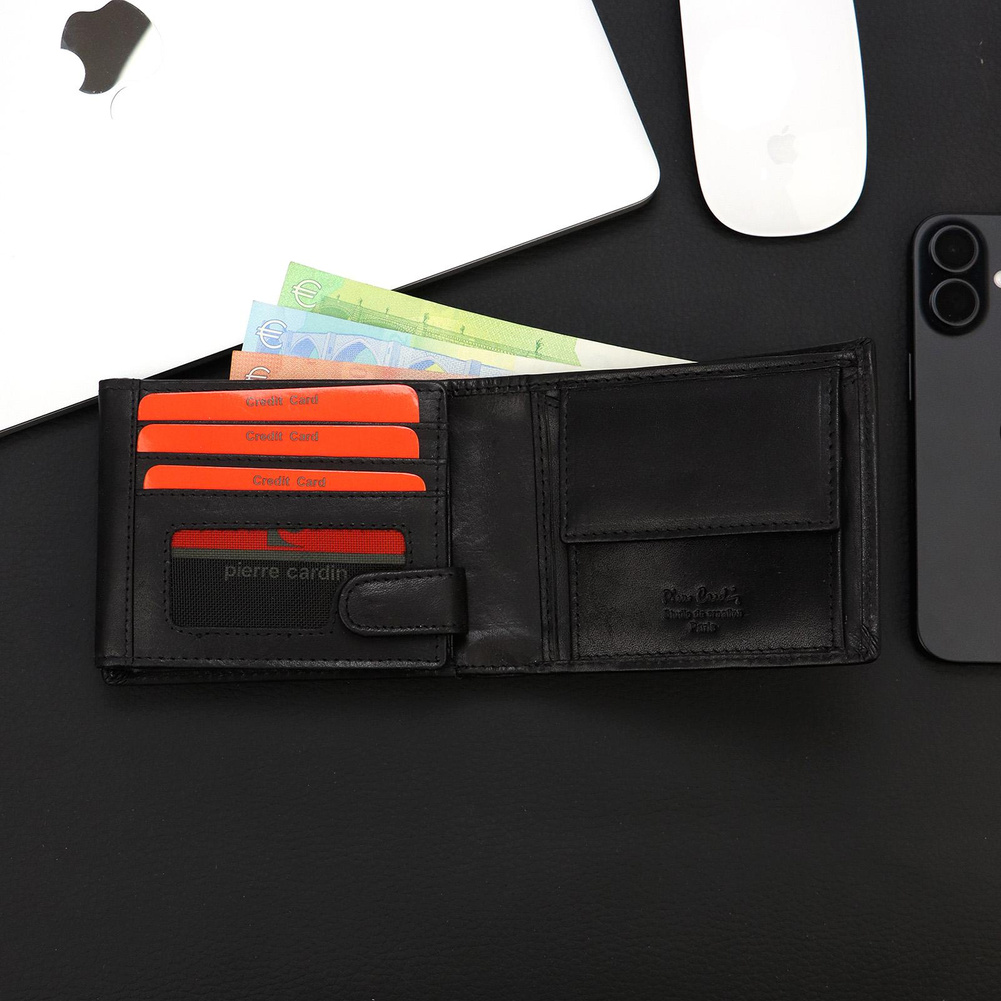 Zmieścisz tam zarówno karty płatnicze, lojalnościowe i inne w standardowym formacie ID-1 (85,6 x 53,98 x 0,76 mm) Przegródki znajdują się w dwóch miejscach portfela. Pierwsza sekcja przegródek dostępna jest zaraz po otwarciu portfela, co gwarantuje szybki dostęp do tych najczęściej używanych kart.