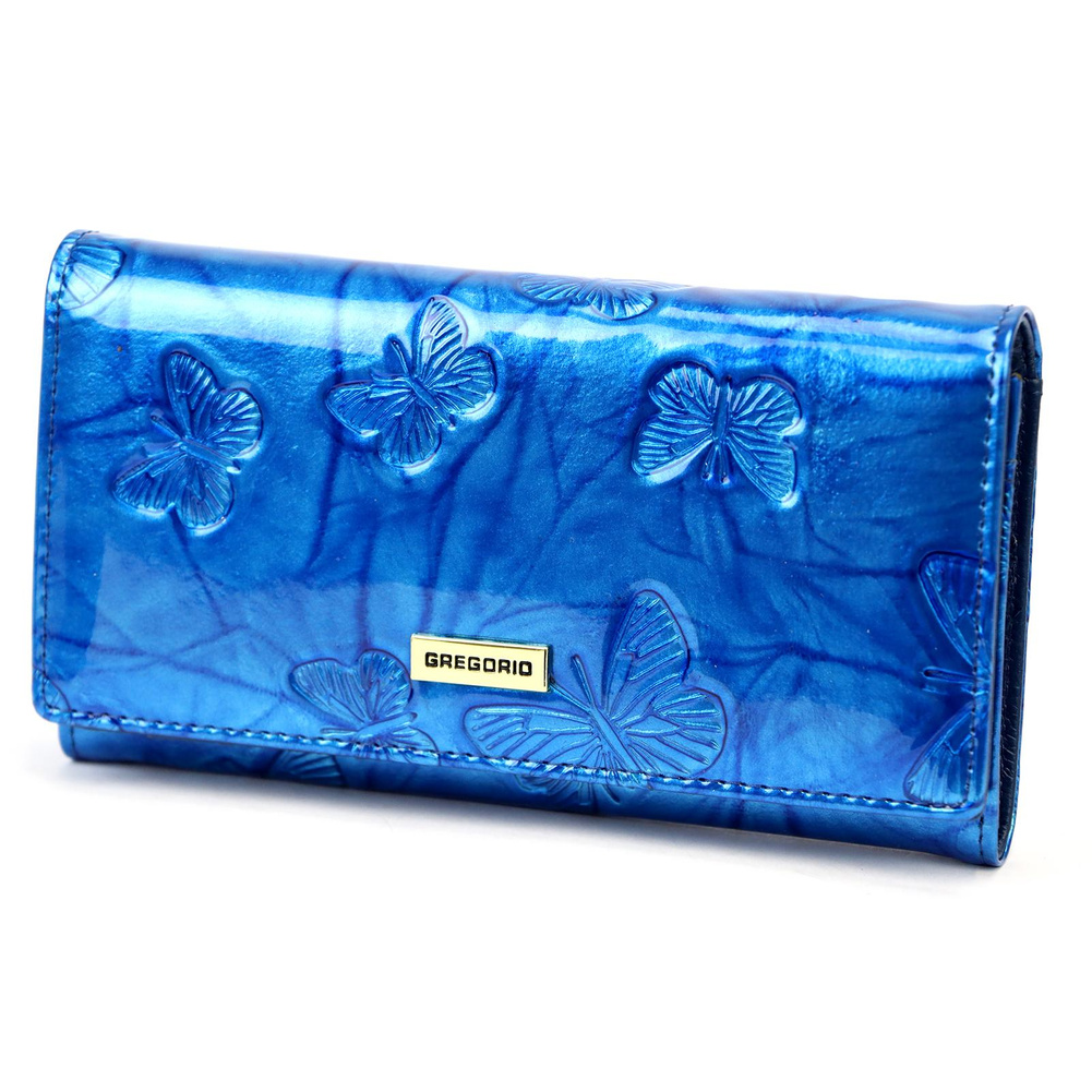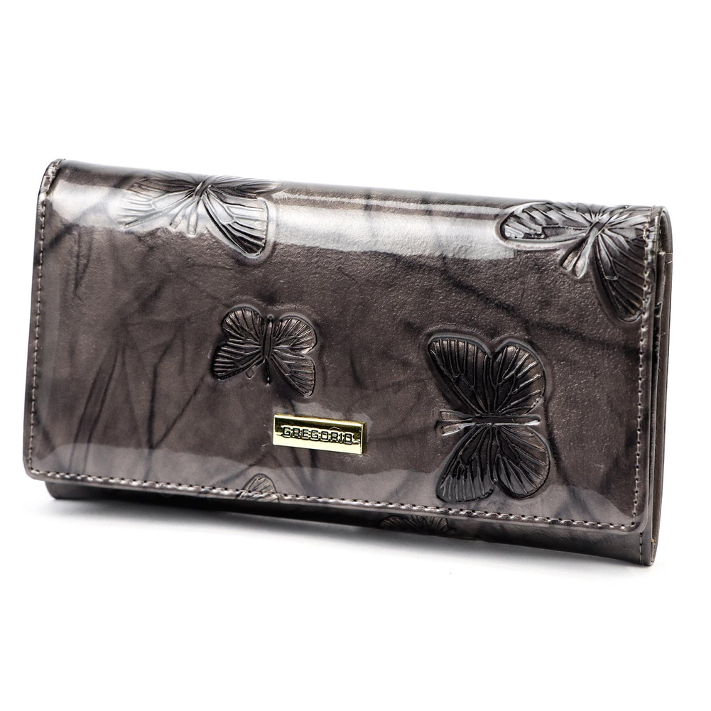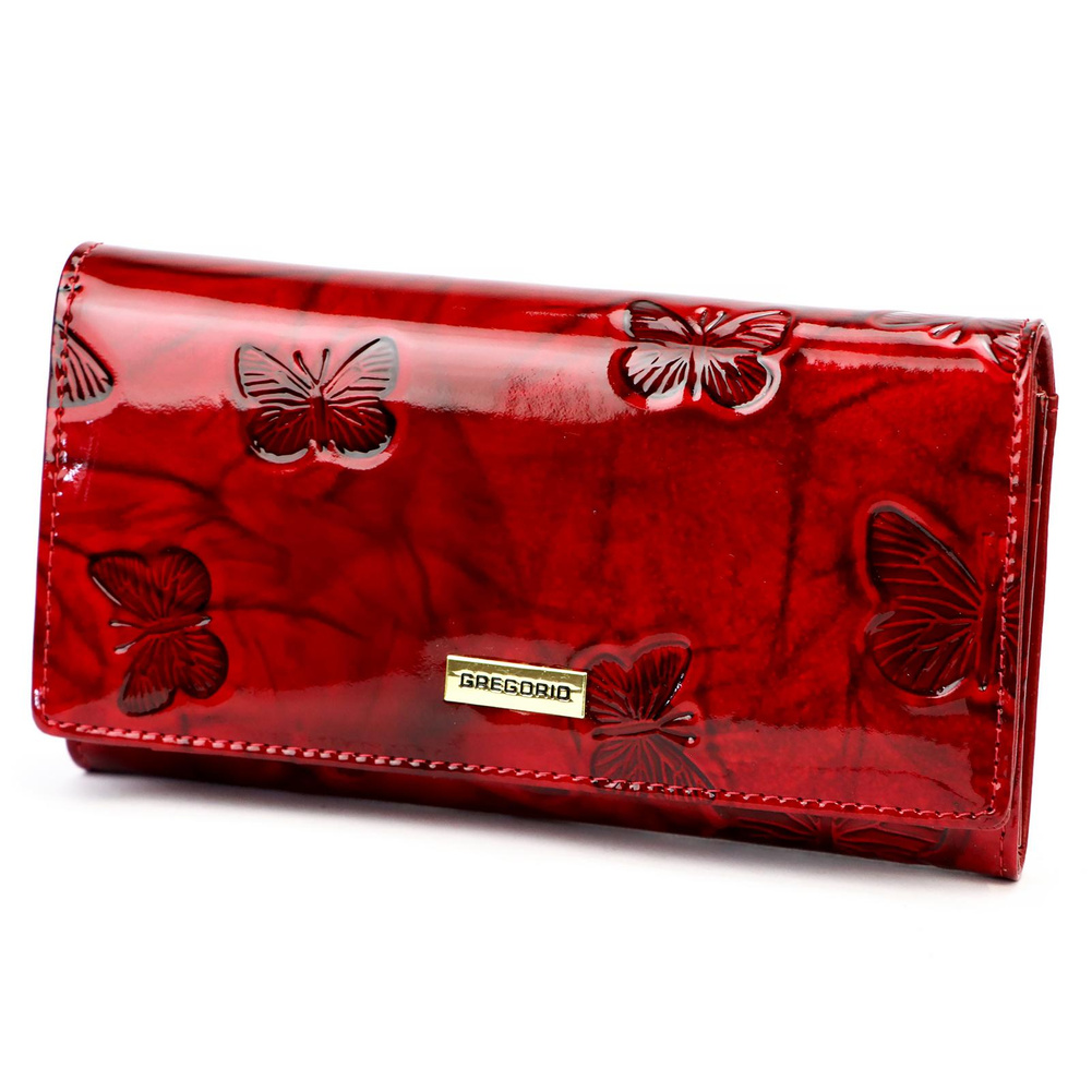 DUŻY PORTFEL DAMSKI PORTMONETKA LAKIEROWANA SKÓRZANA NA ZATRZASK W MOTYLE