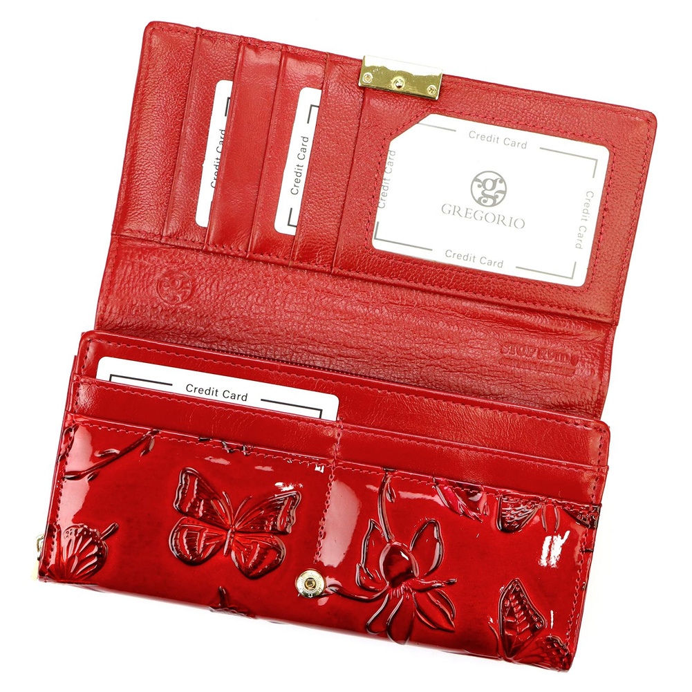 Portfel zamykany jest na solidny zatrzask, co gwarantuje szybki i wygodny dostęp do zawartości, jednocześnie zapewniając bezpieczeństwo przechowywanych przedmiotów. Jest to dodatek, który łączy estetykę z praktycznością, doskonale sprawdzając się w codziennym użytkowaniu.