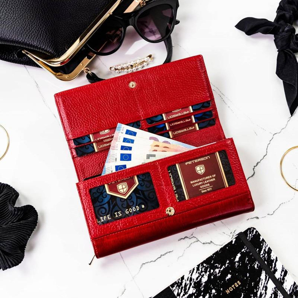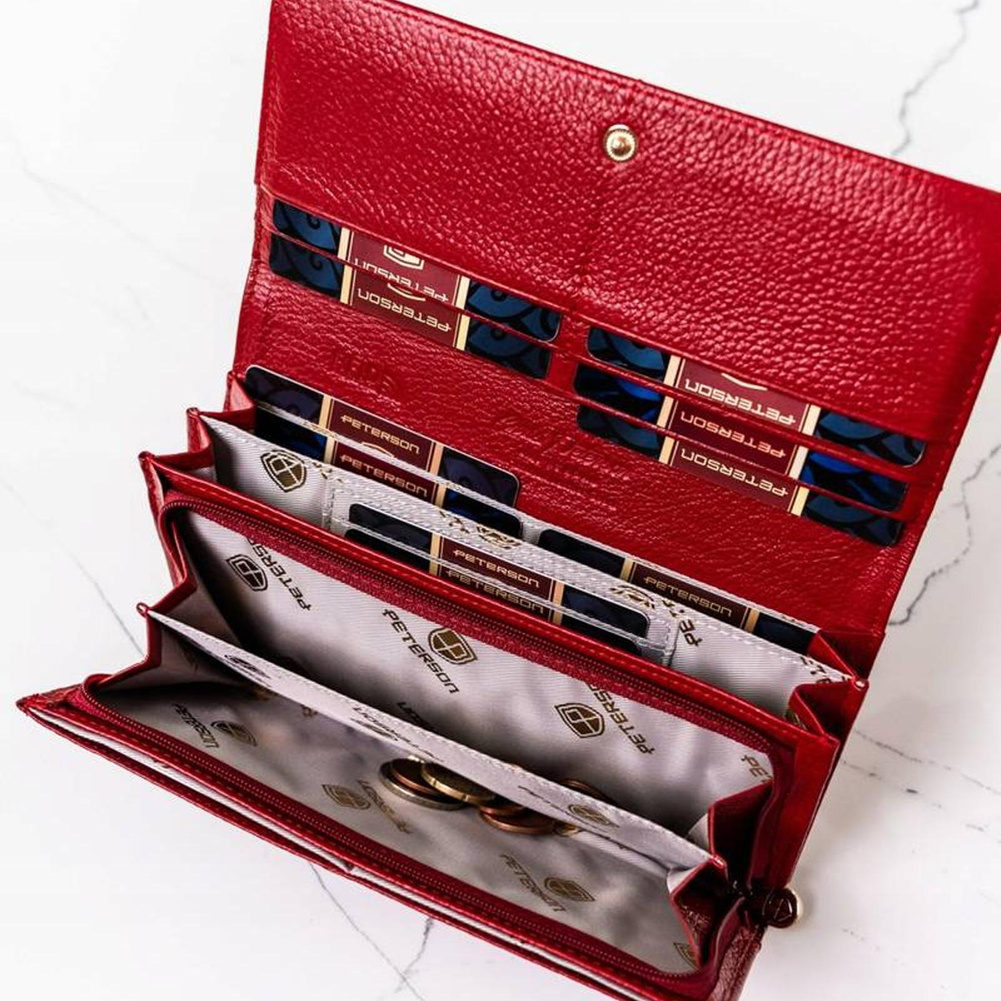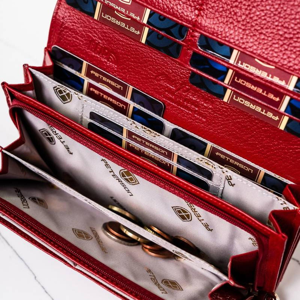 Wnętrze portfela zostało zaprojektowane z myślą o maksymalnej funkcjonalności. Posiada dwie przestronne komory, idealne do przechowywania banknotów i dokumentów. Portfel wyposażony jest także w przegródki na karty, co czyni go idealnym na codzienne potrzeby związane z kartami płatniczymi, lojalnościowymi czy wizytówkami. Dodatkowo, posiada jedną kieszeń na monety, zamykaną na suwak, co zapewnia bezpieczne przechowywanie drobnych.