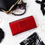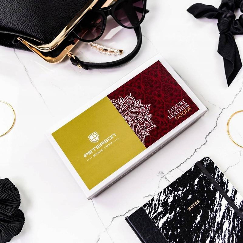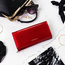 Portfel zamykany jest na solidny zatrzask, co gwarantuje szybki i wygodny dostęp do zawartości, jednocześnie zapewniając bezpieczeństwo przechowywanych przedmiotów. Jest to dodatek, który łączy estetykę z praktycznością, doskonale sprawdzając się w codziennym użytkowaniu.
