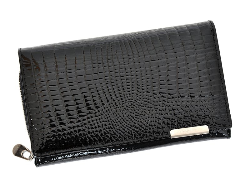 - Cechy szczególne: widoczne logo producenta, okienko na zdjęcia, lakierowana skóra