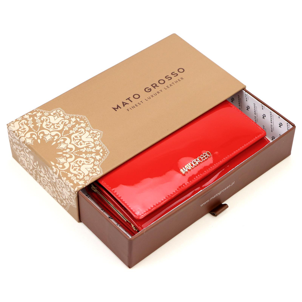 Portmonetka ma klasyczny, podłużny kształt, który gwarantuje łatwość użytkowania. Orientacja pozioma sprawia, że jest wygodna w codziennym użytkowaniu, a jednocześnie zachowuje elegancki wygląd. Złote okucia dodają jej subtelnego blasku, podkreślając wyjątkowość tego modelu.