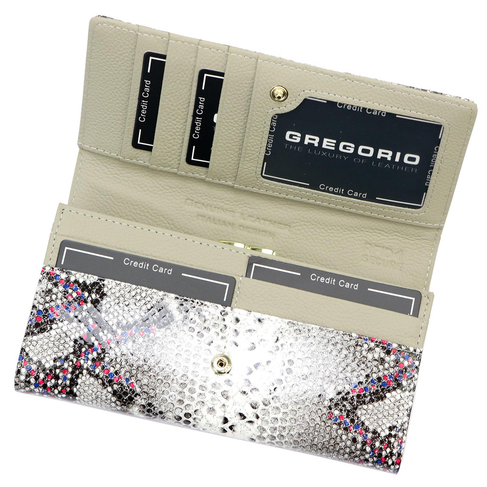 Portfel zamykany jest na solidny zatrzask, co gwarantuje szybki i wygodny dostęp do zawartości, jednocześnie zapewniając bezpieczeństwo przechowywanych przedmiotów. Jest to dodatek, który łączy estetykę z praktycznością, doskonale sprawdzając się w codziennym użytkowaniu.