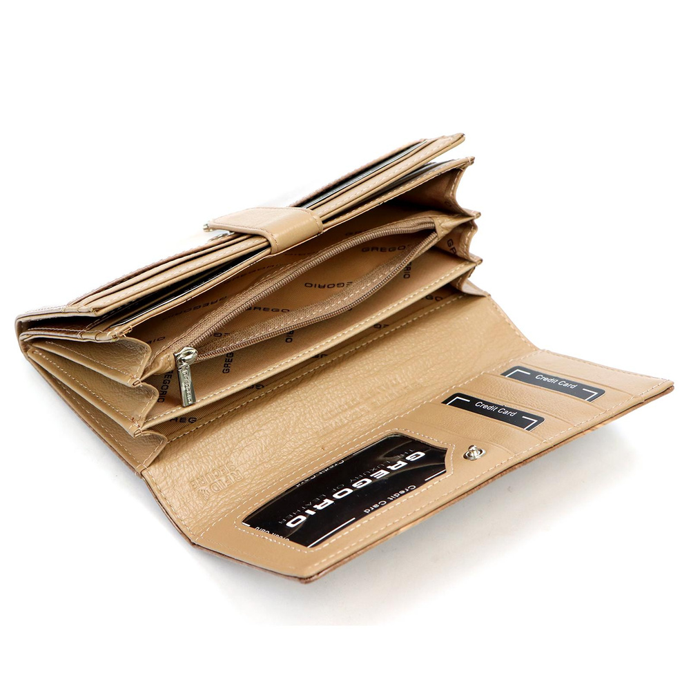 Portmonetka Gregorio jest zaprojektowana z myślą o maksymalnej funkcjonalności. Posiada aż trzy główne komory, które pomieszczą dokumenty i najważniejsze przedmioty, oraz 16 przegródek na karty, co pozwala na wygodną organizację wszystkich niezbędnych kart i wizytówek. Przezroczysta przegroda na zdjęcia dodaje portmonetce osobistego charakteru, umożliwiając przechowywanie pamiątkowych fotografii w widocznym miejscu. Model wyposażony jest także w dwie kieszenie na monety, zamykane na solidny suwak, co gwarantuje bezpieczeństwo przechowywania gotówki.