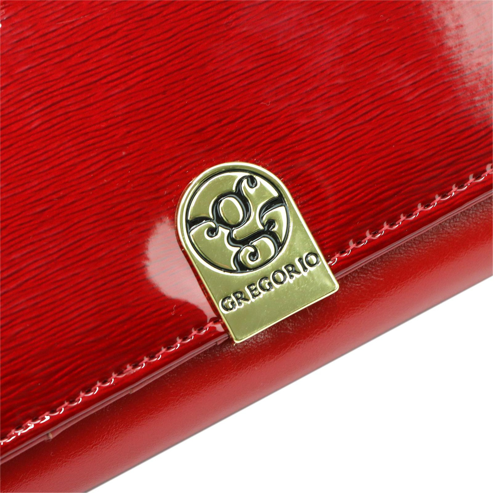Portfel zamykany jest na solidny zatrzask, co gwarantuje szybki i wygodny dostęp do zawartości, jednocześnie zapewniając bezpieczeństwo przechowywanych przedmiotów. Jest to dodatek, który łączy estetykę z praktycznością, doskonale sprawdzając się w codziennym użytkowaniu.
