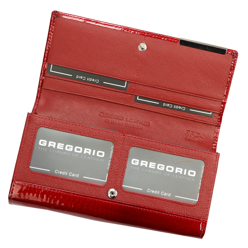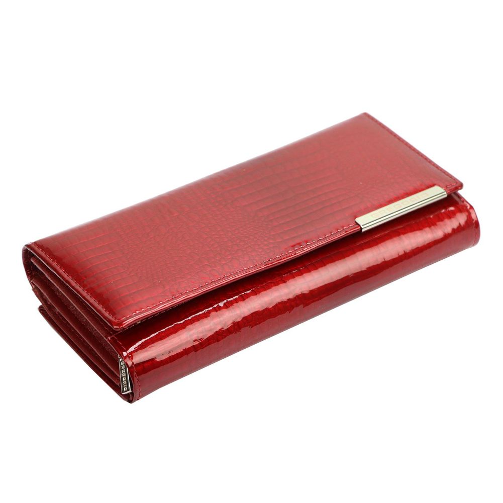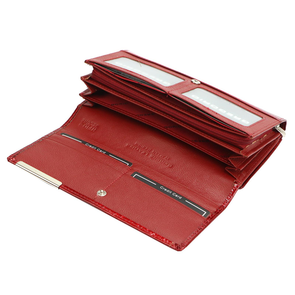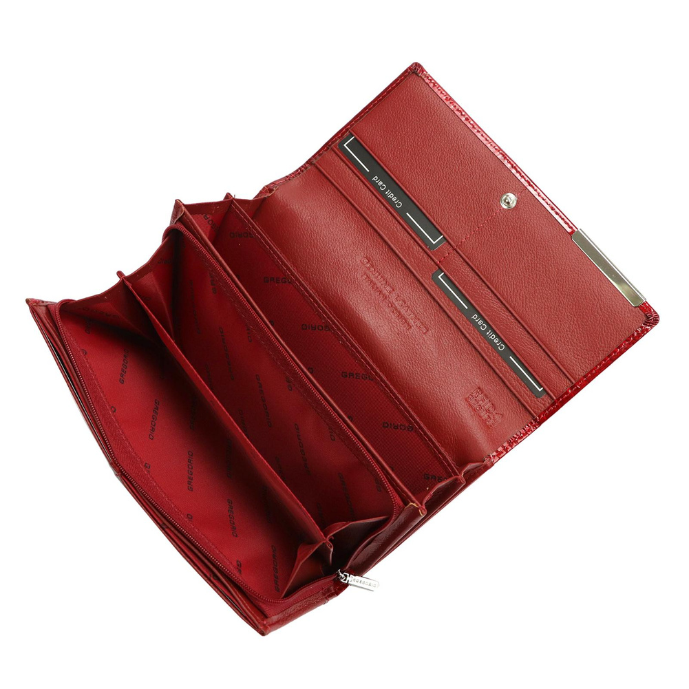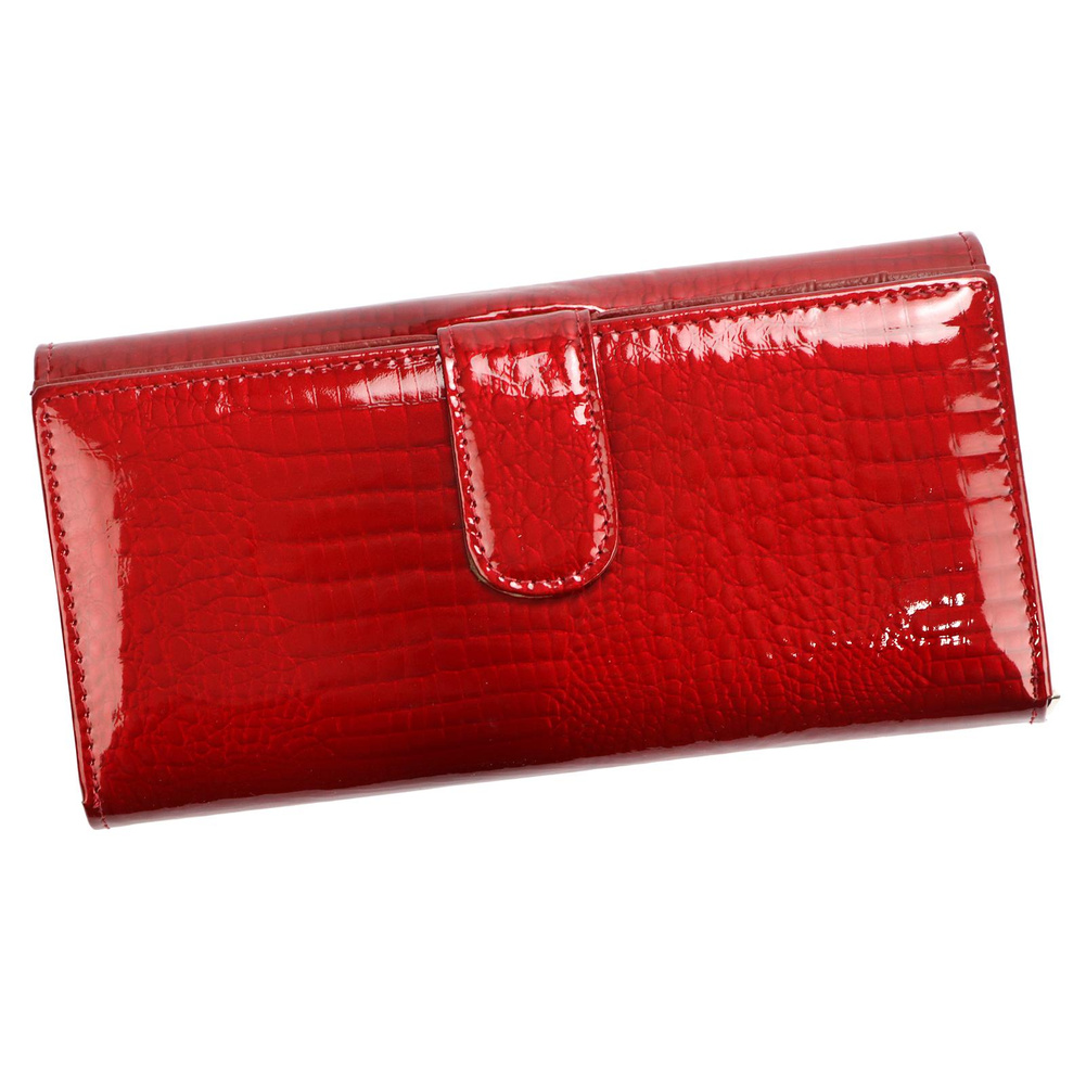 Portfel zamykany jest na solidny zatrzask, co gwarantuje szybki i wygodny dostęp do zawartości, jednocześnie zapewniając bezpieczeństwo przechowywanych przedmiotów. Jest to dodatek, który łączy estetykę z praktycznością, doskonale sprawdzając się w codziennym użytkowaniu.