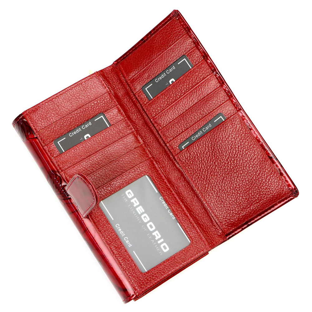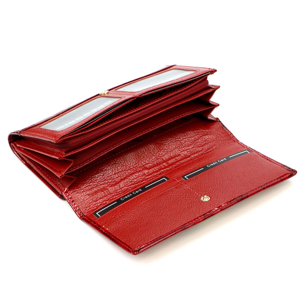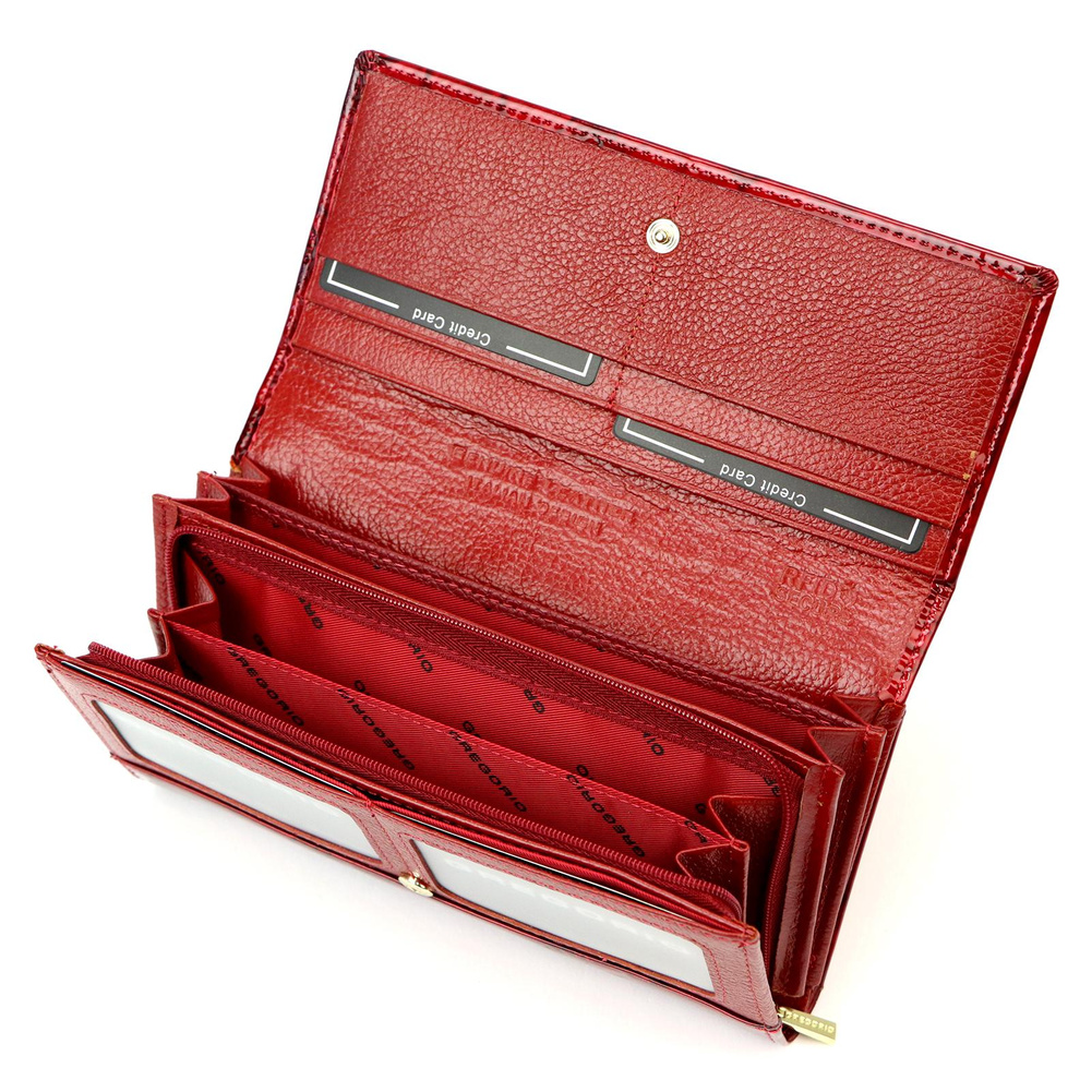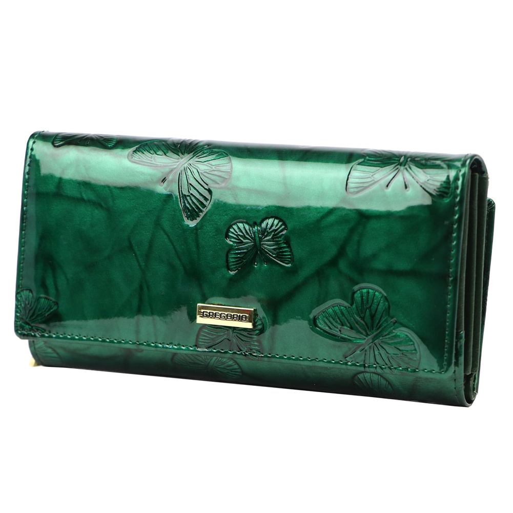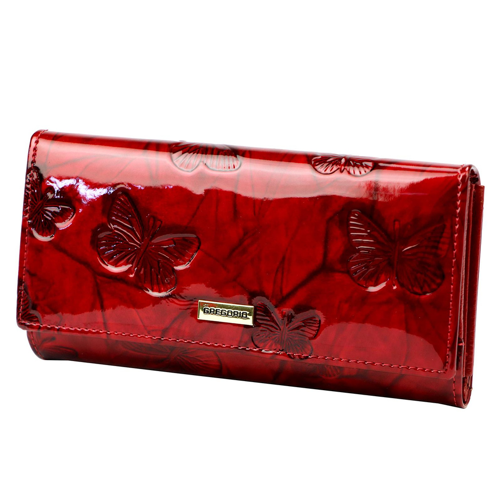 Zapięcie na zatrzask zapewnia bezpieczeństwo przechowywanych przedmiotów, eliminując ryzyko ich przypadkowego wypadnięcia. Dodatkowo, faktura lakierowana dodaje elegancji i sprawia, że portfel zachwyca nie tylko swoim wyglądem, ale i wykończeniem.