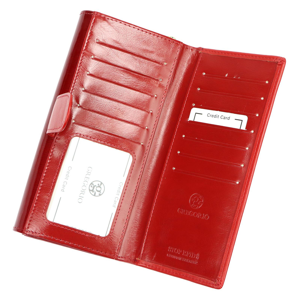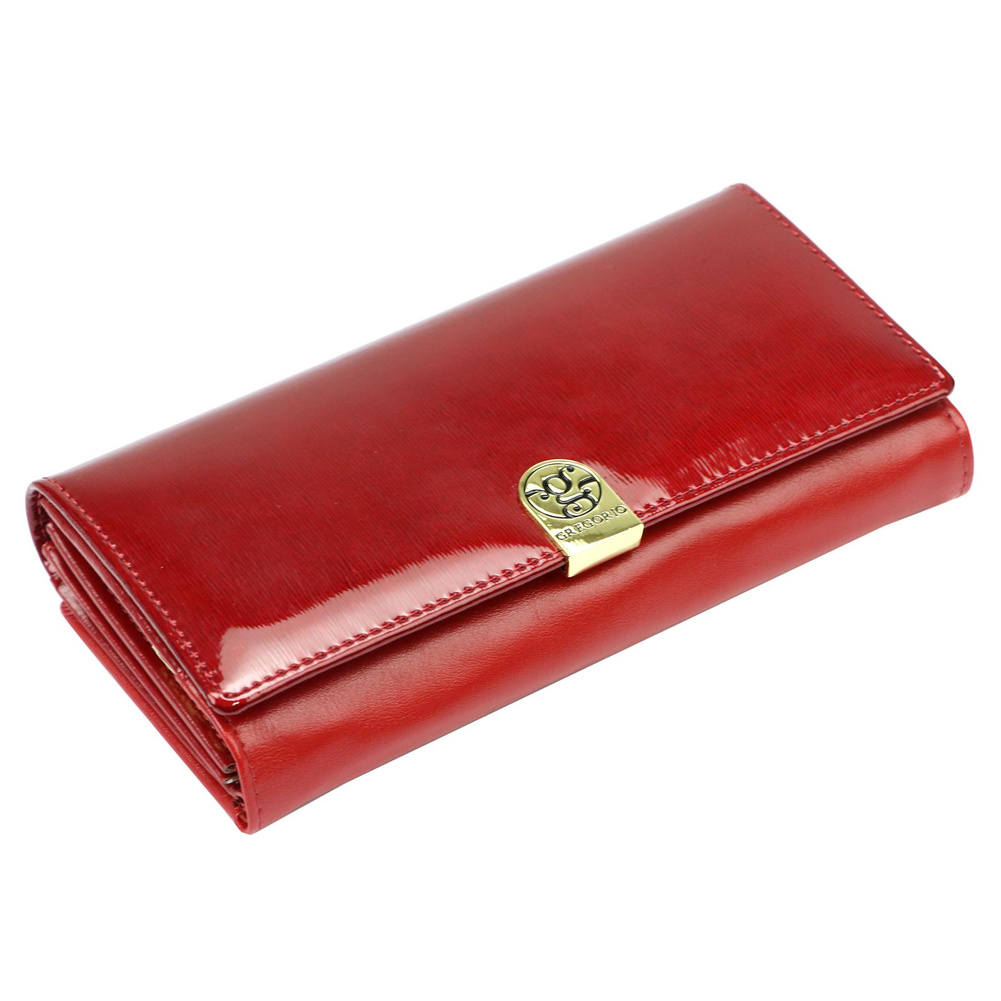 Portfel zamykany jest na solidny zatrzask, co gwarantuje szybki i wygodny dostęp do zawartości, jednocześnie zapewniając bezpieczeństwo przechowywanych przedmiotów. Jest to dodatek, który łączy estetykę z praktycznością, doskonale sprawdzając się w codziennym użytkowaniu.