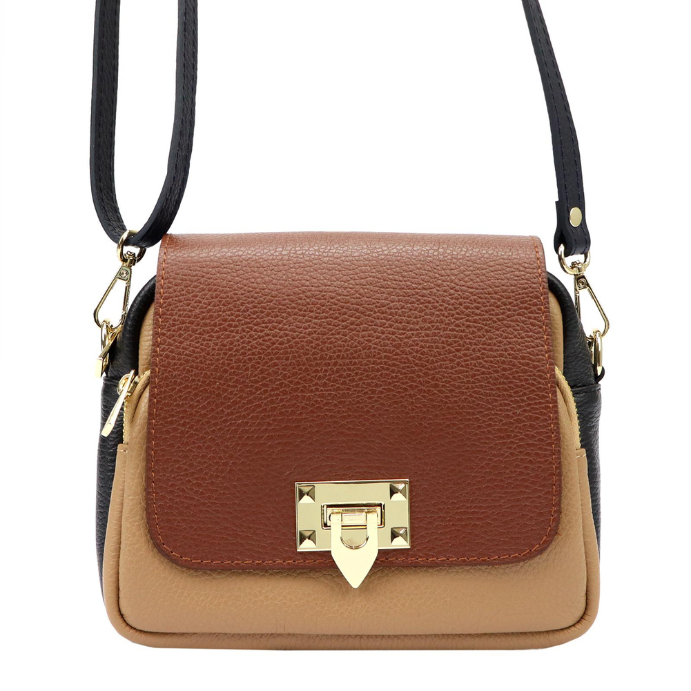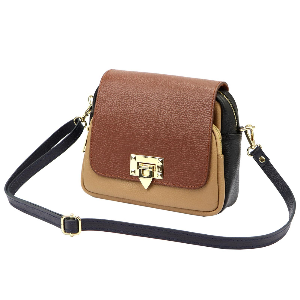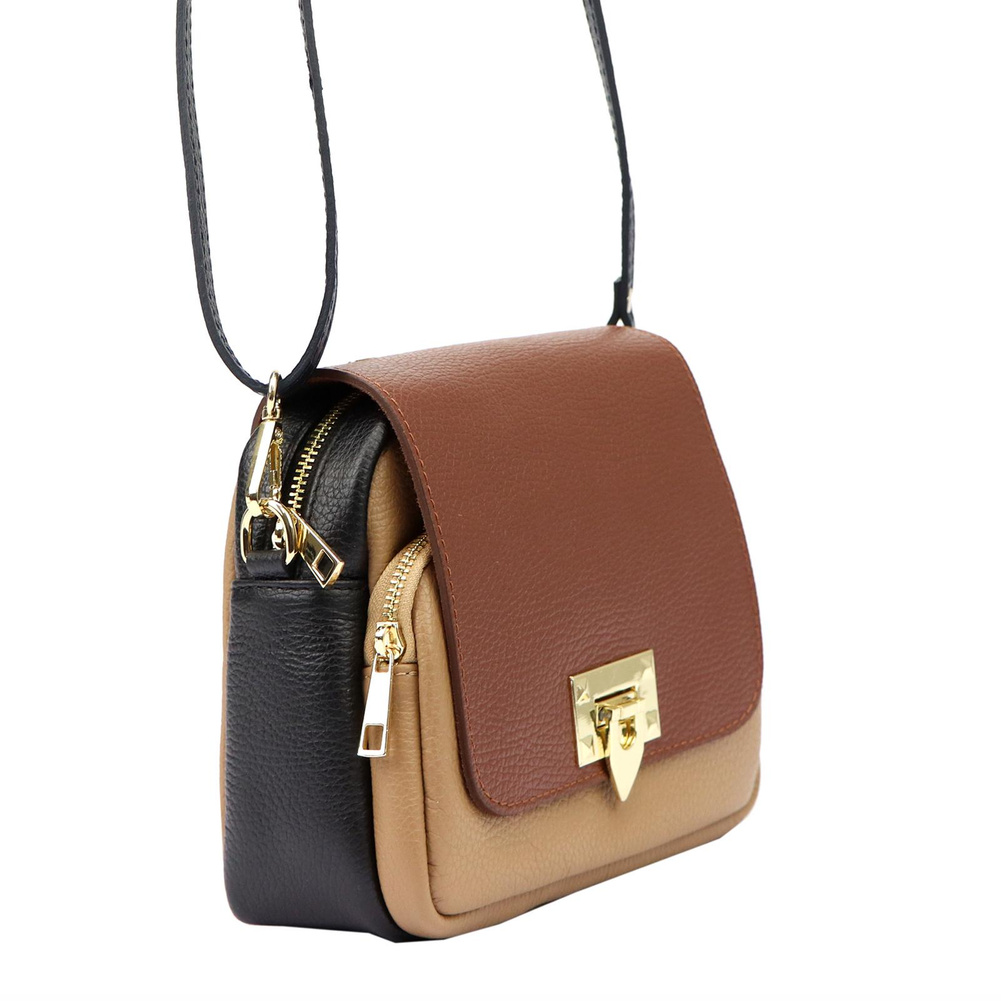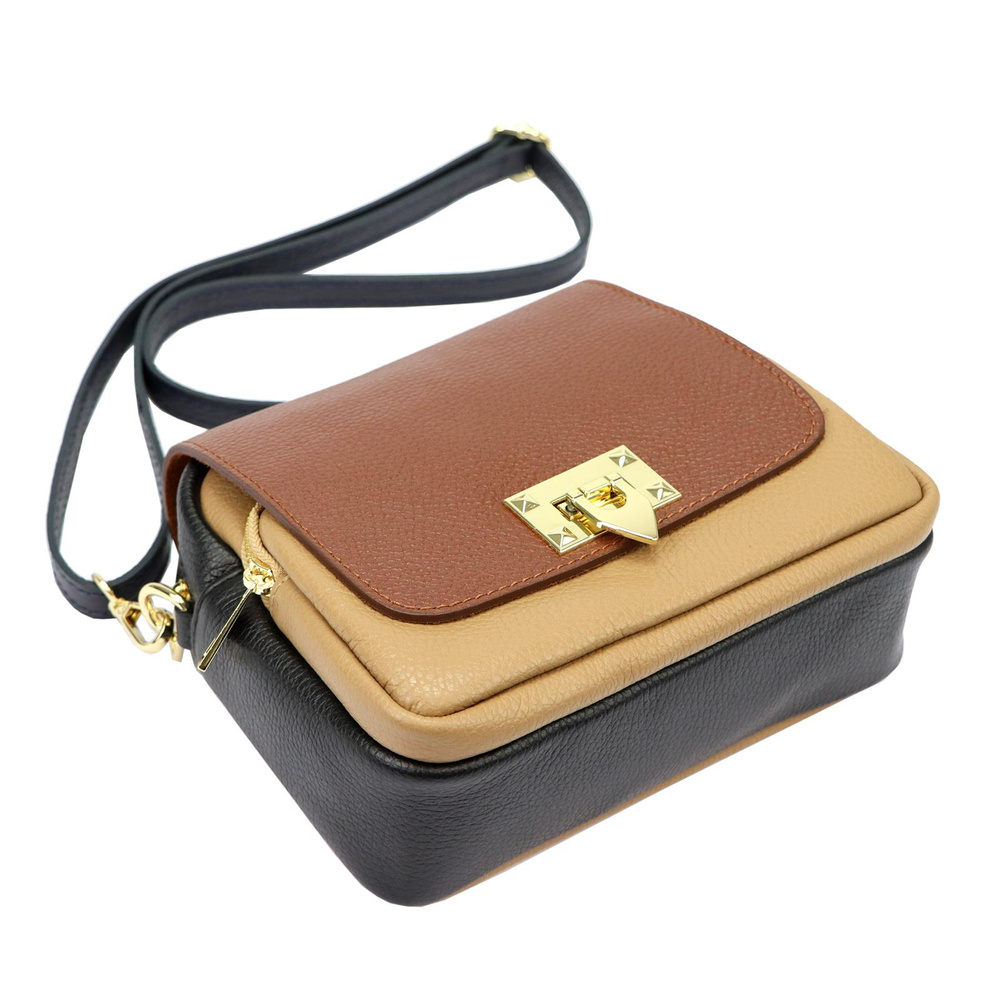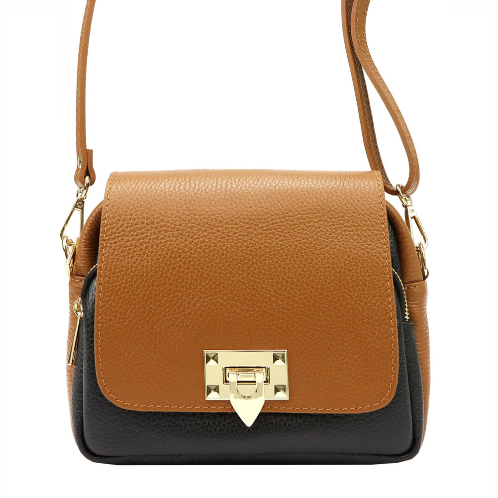 Złote okucia dodają elegancji i są doskonałym akcentem komponującym się z głębią barw skóry.