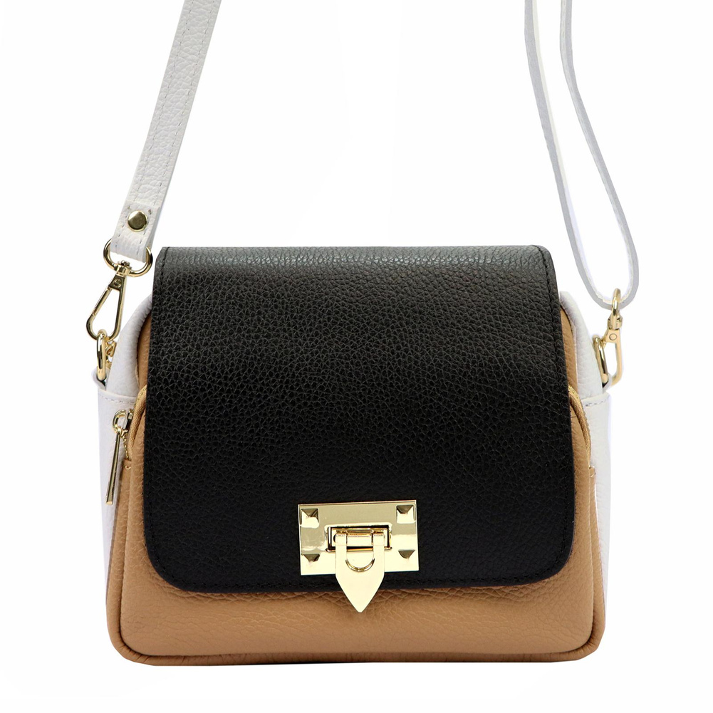 Torebka o wymiarach 21.5 cm długości, 18 cm wysokości oraz 10 cm szerokości została zaprojektowana z myślą o kobietach ceniących unikatowe połączenie funkcjonalności z modnym designem.