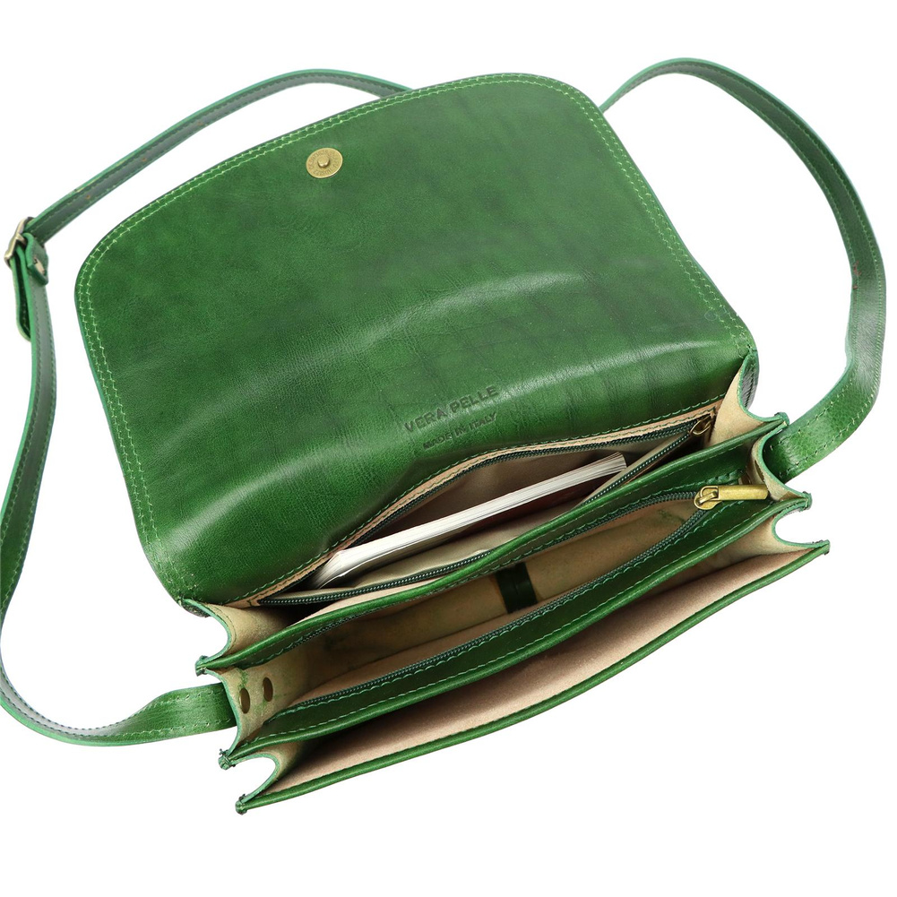 Trzy oddzielne komory oraz dwie funkcjonalne kieszenie, w tym zasuwana wewnętrzna kieszonka na dokumenty i zewnętrzna na drobne przedmioty, pozwalają na bezpieczne przechowywanie zarówno telefonu, portfela, jak i kluczy czy kosmetyków.