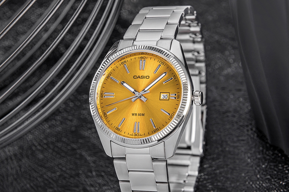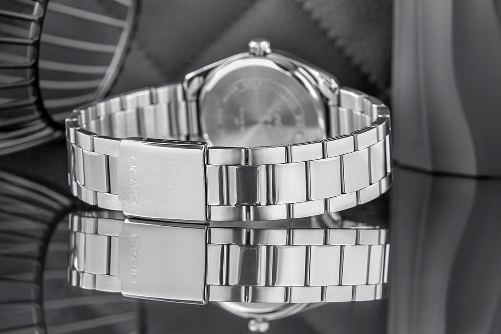 Model należy do kolekcji Casio Classic, która charakteryzuje się eleganckimi, prostymi wzorami stawiającymi na ponadczasowy styl. Srebrna koperta pięknie harmonizuje ze złotą tarczą, tworząc ponadczasowy kontrast idealny zarówno do formalnych, jak i codziennych stylizacji. Delikatny połysk srebrnych indeksów i wskazówek, które dodatkowo wypełniono fluorescencyjną powłoką, zapewnia doskonałą czytelność także w warunkach słabego oświetlenia. Całość dopełnia solidna, srebrna bransoleta wykonana ze stali nierdzewnej, która dodaje zegarkowi elegancji i sprawia, że jest on wygodny w noszeniu. Ten harmonijny dobór kolorów i detali sprawia, że model MTP-1302PD-9AVEF stanowi idealne połączenie klasyki i współczesnego stylu.