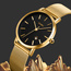 To minimalistyczne połączenie głębokiej czerni i ciepłego złota tworzy efekt luksusu w najlepszym wydaniu – takiego, który nie potrzebuje dodatkowych ozdób, by robić wrażenie. Czarna, matowa tarcza przypomina elegancki, wieczorowy aksamit, na którym lśnią złote wskazówki i smukłe indeksy. Drobny detal z datą, umieszczony w maleńkim, złotym okienku, jest niczym mały sekret – dyskretny, ale ważny. Jego złota bransoleta w stylu siateczki delikatnie przylega do skóry, niczym jedwabny szal, oplatając nadgarstek z gracją. Skmei 1530GD to zegarek dla kobiety, która chce być elegancka o każdej porze dnia. Jest jak pewność siebie i klasyczna elegancja w jednym – zawsze na czas, zawsze z klasą.
