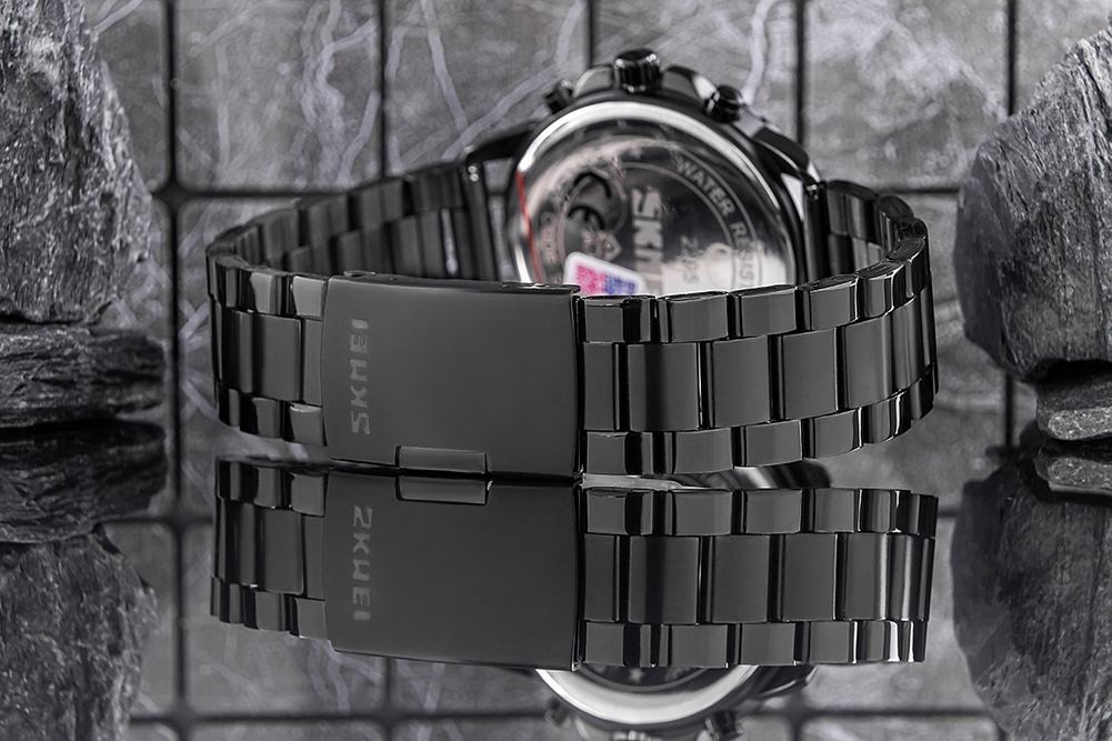 Bransolety zegarków Skmei wykonane z najwyższej jakości stali nierdzewnej, łączą w sobie surową wytrzymałość z elegancją, która przyciąga spojrzenia. Ich solidna konstrukcja to nie tylko symbol niezawodności, ale też pewność, że zegarek będzie trzymać się mocno na nadgarstku, bez względu na wyzwania dnia. Precyzyjne, bezpieczne zapięcie z detalem logo Skmei dodaje całości klasy i wyjątkowego charakteru, tworząc bransoletę, która jednocześnie podkreśla siłę i styl – bez kompromisów.