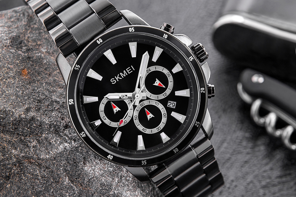 Zegarek męski Skmei 2295 to luksusowy design i wyrazista elegancja, która podkreśli Twój styl w każdej sytuacji. Tarcza zegarka jest wyposażona w trzy subtarcze, które dodają mu sportowego charakteru i pełnią praktyczne funkcje, takie jak stoper. Datownik dyskretnie umieszczono między godziną czwartą a piątą, co nie zakłóca harmonii designu, a jednocześnie jest funkcjonalnym dodatkiem. Całość dopełnia perfekcyjnie wykonana bransoleta, która łączy trwałość z luksusowym wyglądem, sprawiając, że ten zegarek to stylowy dodatek dla mężczyzny, który wie, jak zrobić wrażenie.
