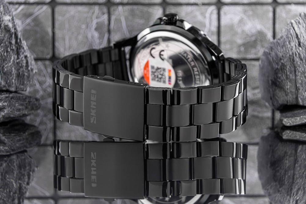 Bransolety zegarków Skmei wykonane z najwyższej jakości stali nierdzewnej, łączą w sobie surową wytrzymałość z elegancją, która przyciąga spojrzenia. Ich solidna konstrukcja to nie tylko symbol niezawodności, ale też pewność, że zegarek będzie trzymać się mocno na nadgarstku, bez względu na wyzwania dnia. Precyzyjne, bezpieczne zapięcie z detalem logo Skmei dodaje całości klasy i wyjątkowego charakteru, tworząc bransoletę, która jednocześnie podkreśla siłę i styl – bez kompromisów.